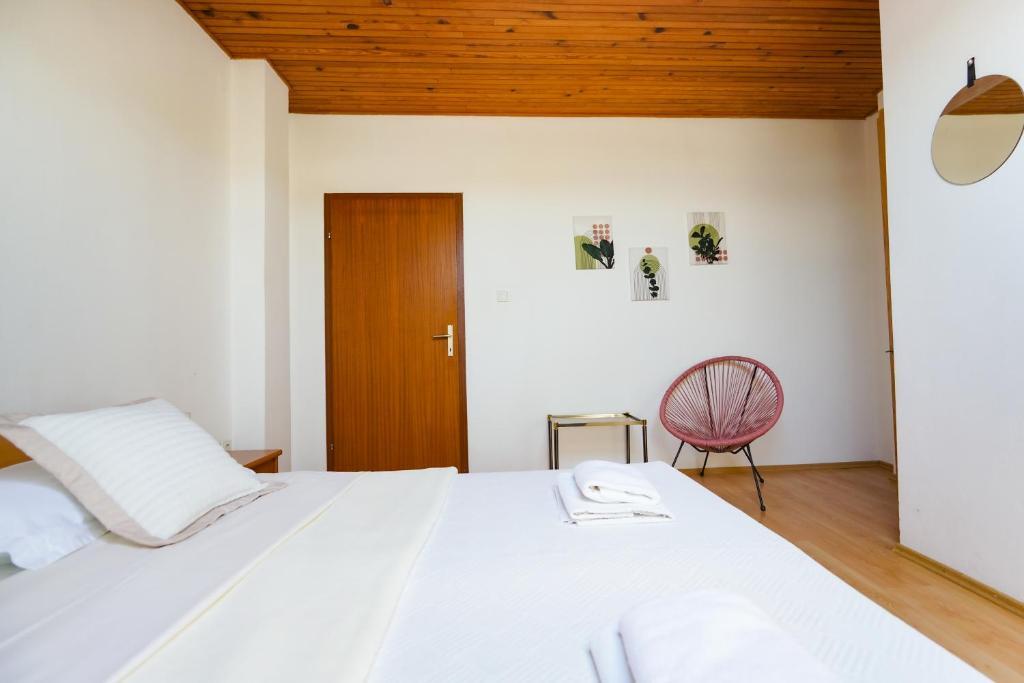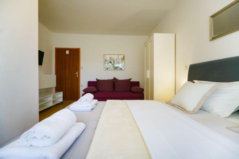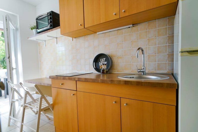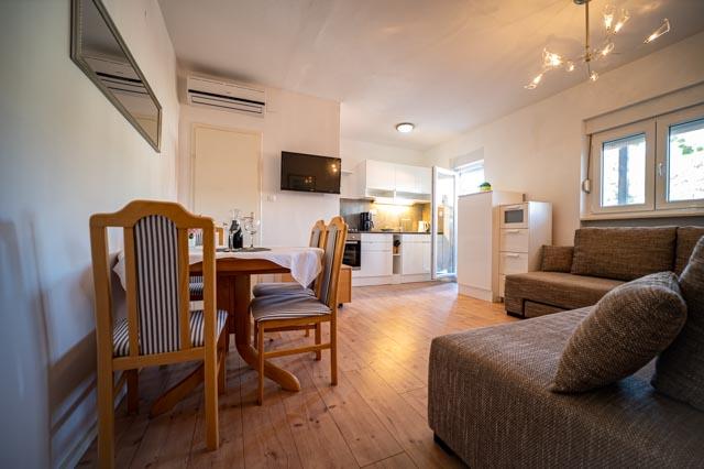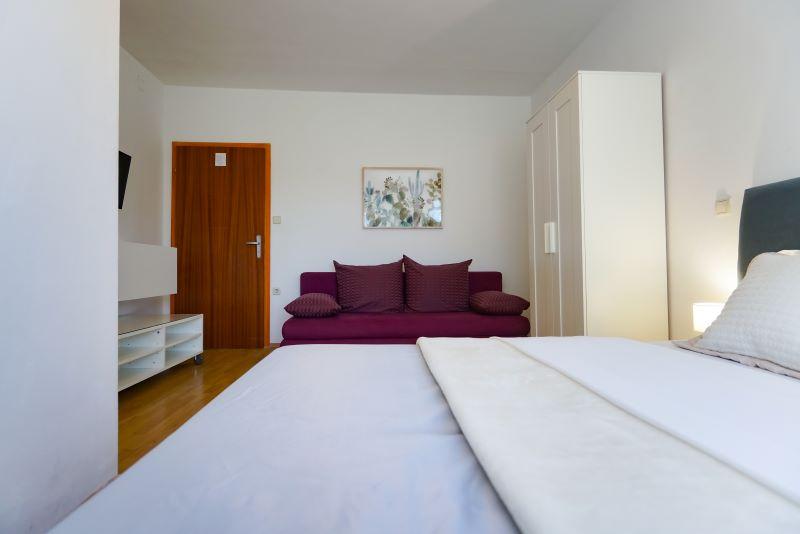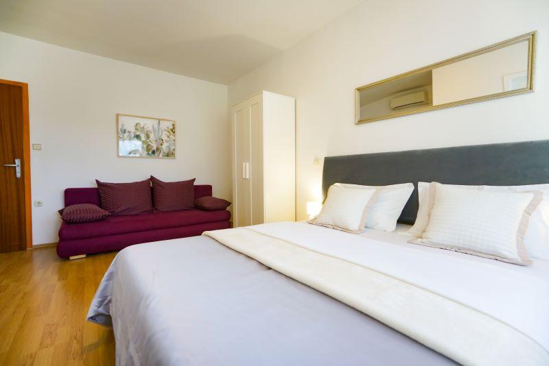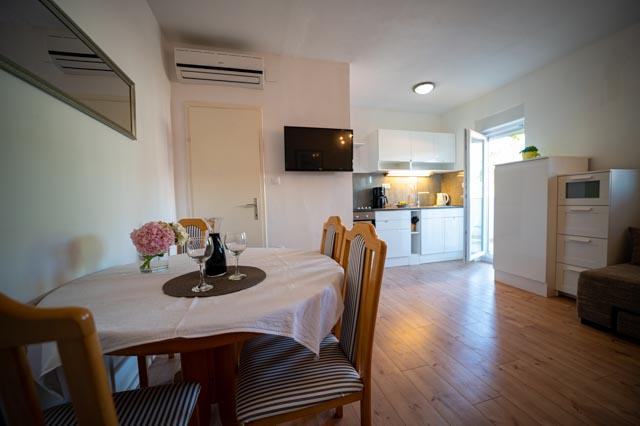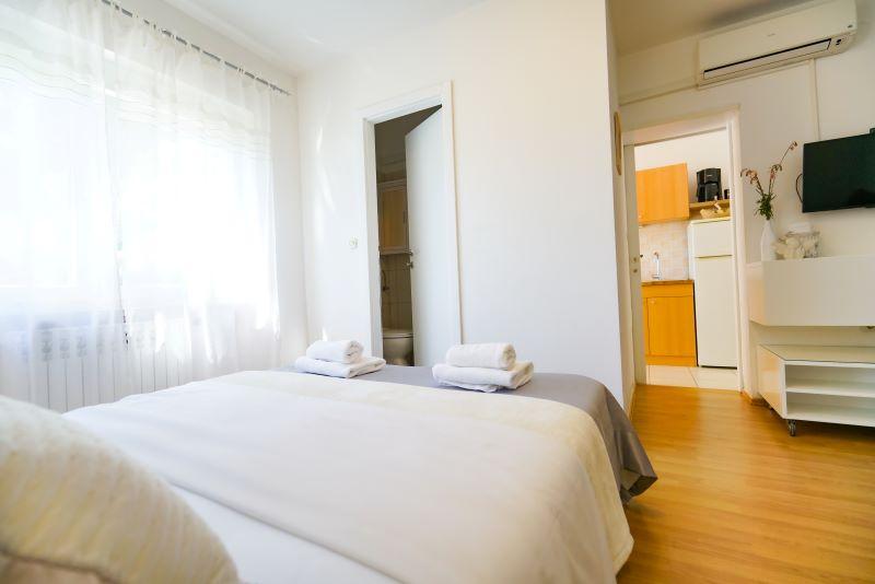 Only 30 meters from the newly renovated Mala Makarska beach! Apartments and rooms Ero are located in Sukošan, just a few meters from the beach, and offer their guests the opportunity for a peaceful family vacation. The facility has 7 accommodation units. We offer you 4 apartments, one studio apartment and two rooms. Each apartment has a terrace with a sea or garden view. The apartments have a fully functional kitchen, LCD satellite television, air conditioning, toilet, large double beds. Guests from the rooms can use the outdoor shared kitchen. Parking and WI-FI internet are provided for each apartment or room. There is also a summer kitchen with a barbecue in the courtyard, which is available to all guests. Near the apartment there are shops, restaurants, beach bars, children's playgrounds, fast food...