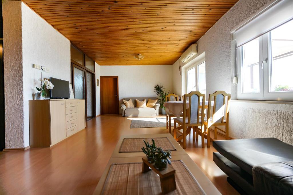The apartment is clean, spacious and comfortable for big family. Mateo, the owner is very helpfull and friendly. We can really recommend it to stay here. There is a beautiful beach. Shops and reastaurant nearby.