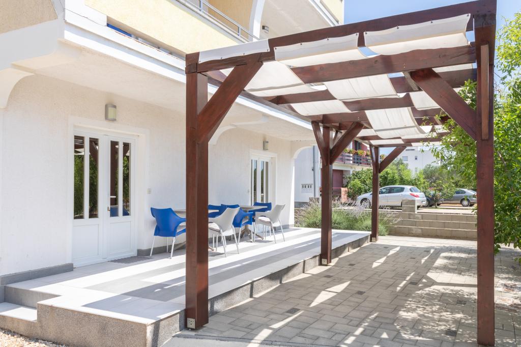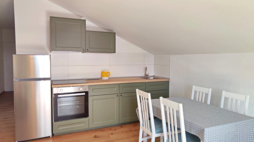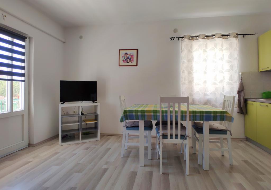 The apartments are a 3-minute walk from the sea, town center and shops and 5 minutes from the beach. Located in a quiet street near the town center. Parking is provided in the yard. Two apartments are on the ground floor of the building and each has an 8 m² terrace in front, and one is newly renovated on the second floor, in the attic of the building with a 6 m² balcony.