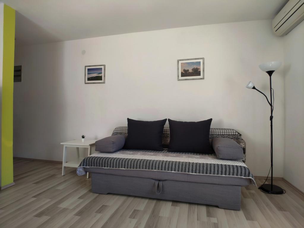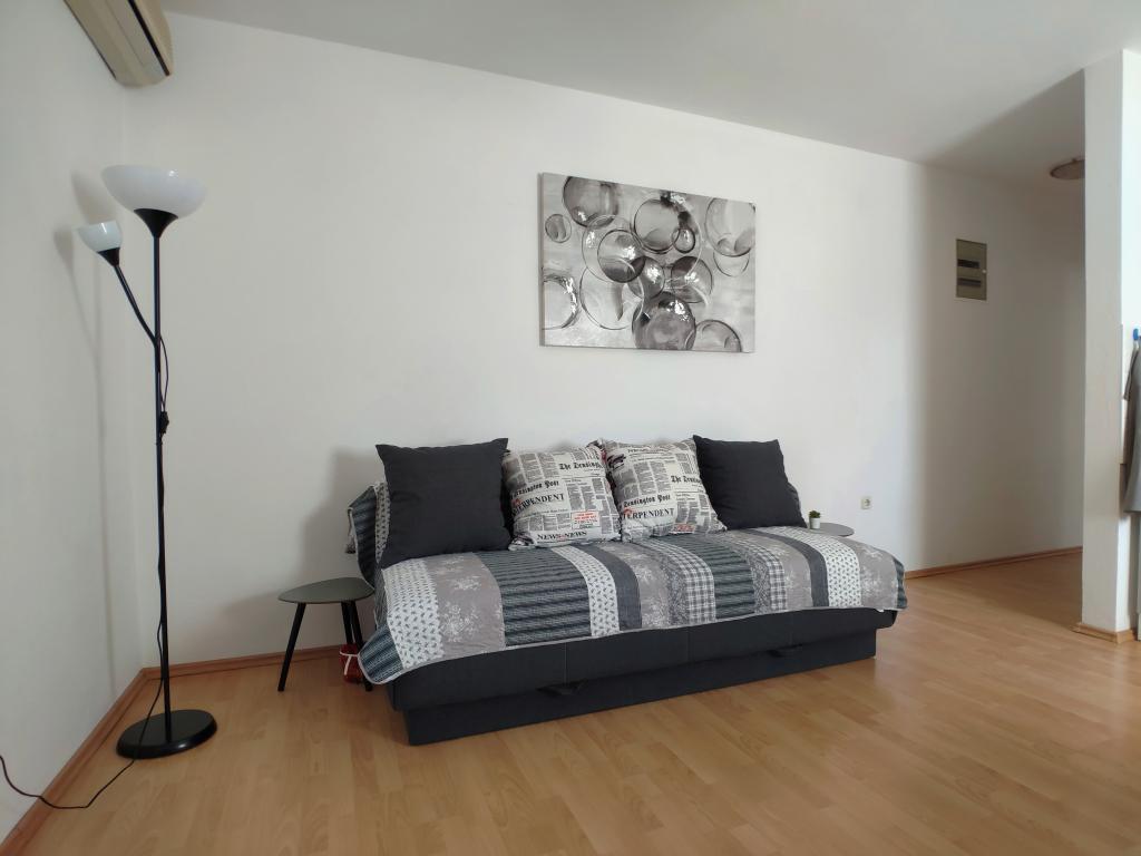The apartment is neat and clean and nicely furnished. The kitchen is fully equipped, every detail was taken care of. The location is excellent, 3-5 minutes walk to the beach "Children's paradise ", and 2-3 minutes to the center, but still on a quiet street which allows a pleasant break. The owners are extremely friendly and friendly and available at all times. I highly recommend it!