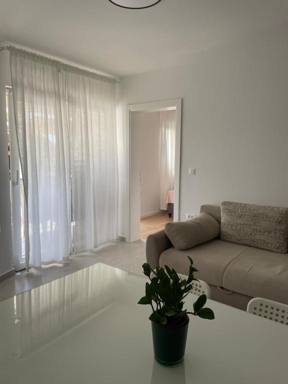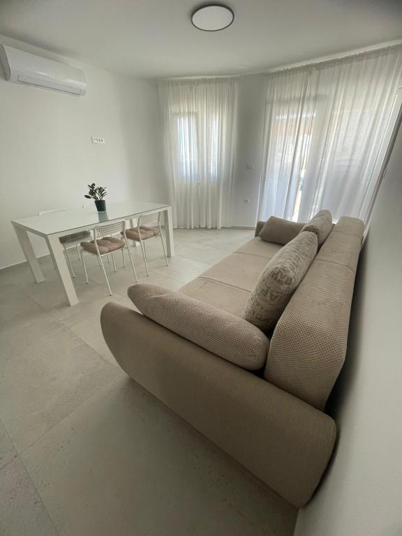 Beautiful, peaceful surroundings, beach choice (sand, mole, limestone), with car you are close to amenities, beautiful walks by the sea. Mrs Olivera is a lovely person, kind, calm, correct, positive, honest and immediately responsive to, messages, questions. The apartment is clean, and it has everything it needs and everything is as in the pictures of the house description.