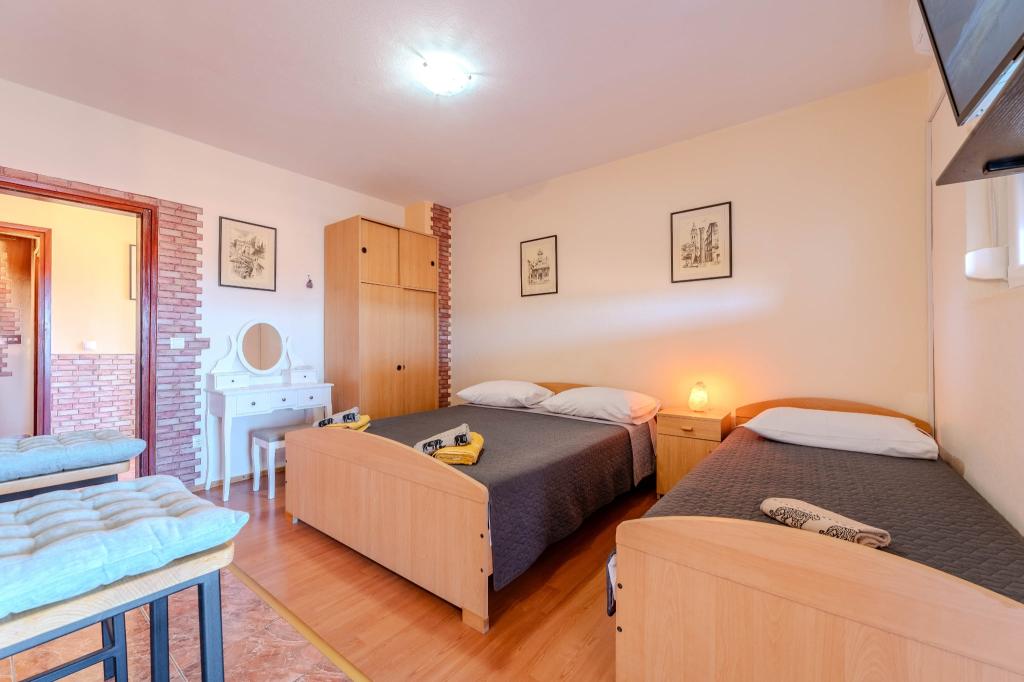 Spent with his wife a fantastic eight days. The hosts are extremely welcoming. The apartment is clean and tidy. Homemade vegetables from the garden. A little farther from the center and the beach, but it is replaced by silence and night peace. Suggestion - introduce air conditioning into the accommodation unit and a new mattress (I'm a little heavier so it fits harder). I recommend for both couples and families with children.