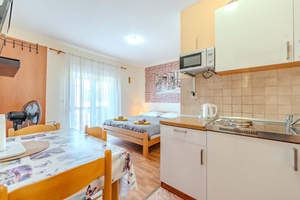 The studio is perfect for a holiday for two. The apartment is in good condition and has everything you need. The sea view from the balcony is particularly beautiful. You can sit comfortably there and watch the sunset. At night you have a wonderful view of the stars. Marin and his family are warm and very nice hosts. They were available to us and helped us with all our doubts. We always felt very comfortable. Sukošan is a small place with beautiful old houses and numerous bathing opportunities. We could also eat and drink coffee. The bus takes you quickly to Zadar and from there to the nearest national park. All in all, we had a great holiday and can highly recommend staying in Sukošan and with Mr. Marin.