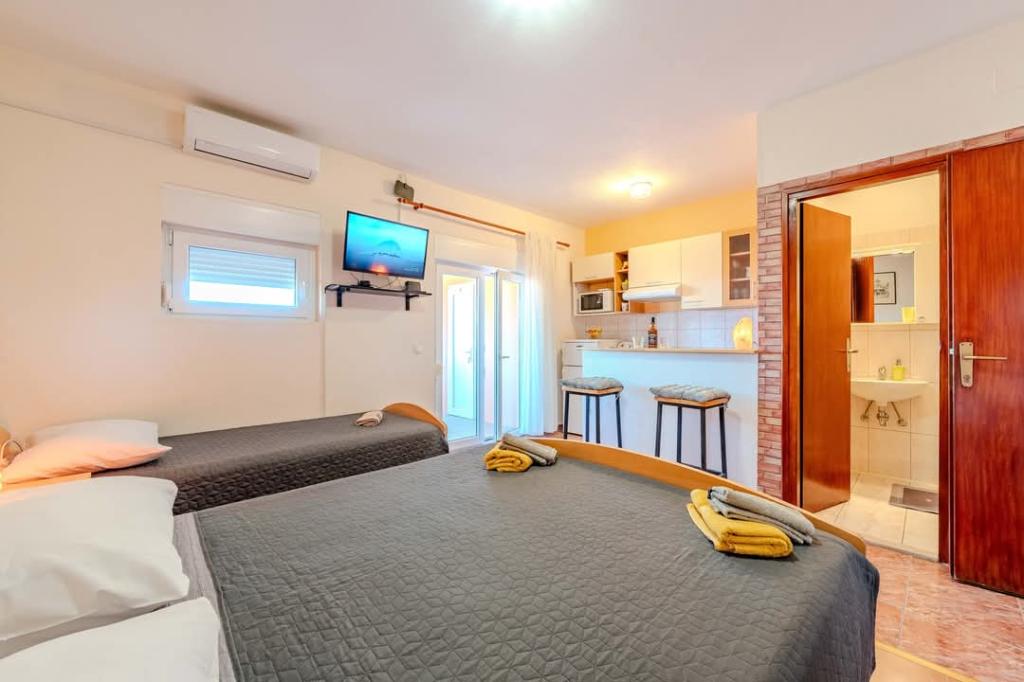All recommendations for these apartments make you feel like you are at home. The view from the terrace is definitely one of the most beautiful we've ever had - it offers peace and tranquility. The apartments are very neat and have everything you need for a perfect vacation. And the hosts Marin and Renata are big-hearted people, full of love and understanding. We will definitely be back and warmly recommend it to anyone looking for a dream vacation.