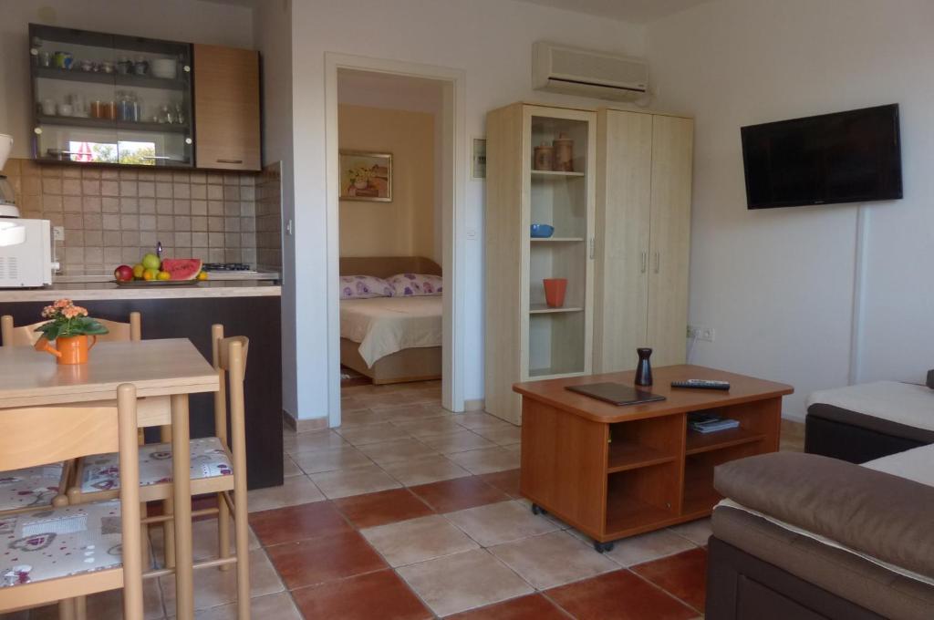 The apartments are located on the beach, only 7 meters from the sea. Between the house and the beach is a quiet promenade, with no possibility of cars passing through. All terraces have a direct view of the sea.