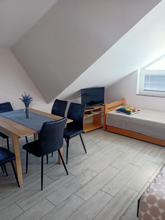 Nice and clean apartment, everything is as in the pictures. With a large terrace and a view of the harbor and ships. The beds are comfortable. The hostess is friendly. Beach Children's Paradise 10 minutes of easy walking. There is a small park for children nearby. Restaurants and small shops close by, as well as bakeries. Sukošan is beautiful.