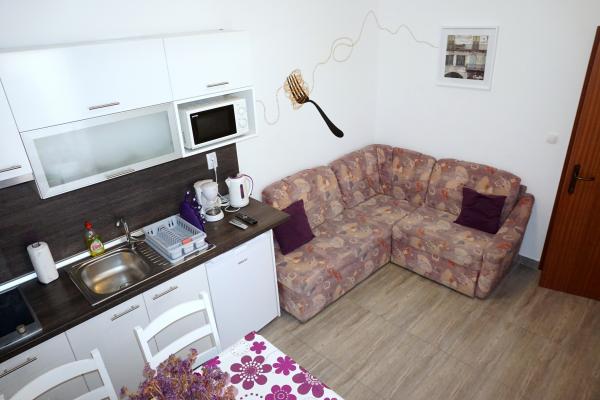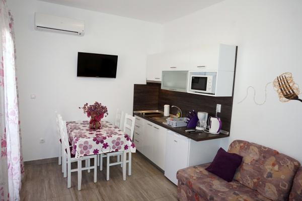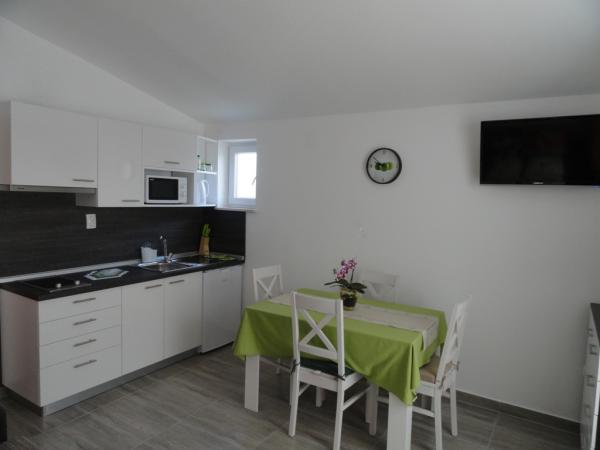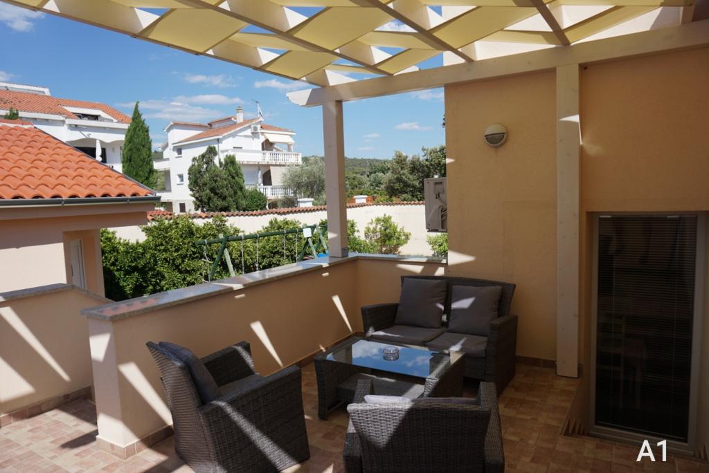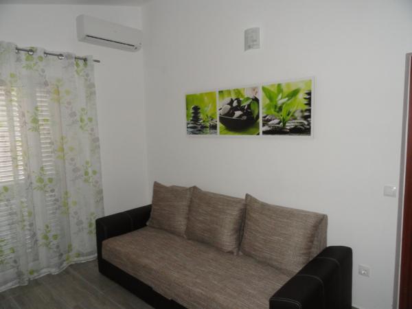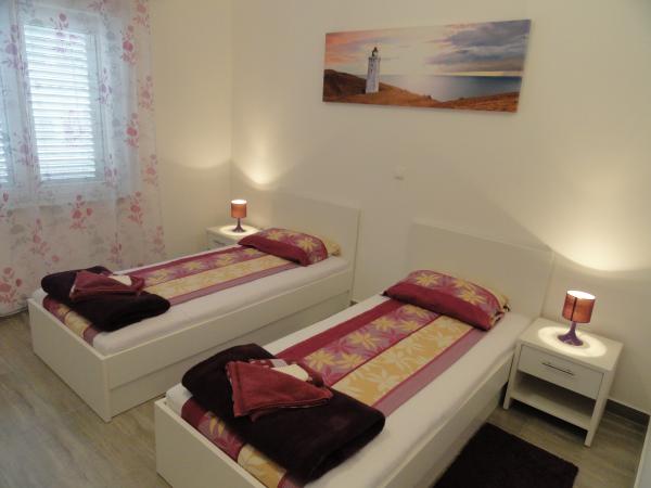 The house has two apartments and three rooms. The apartments and rooms are modern and tastefully decorated and located in a house that was completely renovated in 2014. In the courtyard there is a communal swimming pool with a sunbathing area. Each apartment and room has its own air conditioning. Our apartments and rooms are 300m from the Zlatna luka beach, and 400m from the beach in the Dalmacija marina, and a 10-minute easy walk from the center of Sukošan.