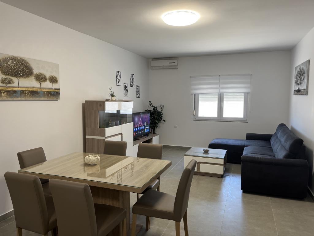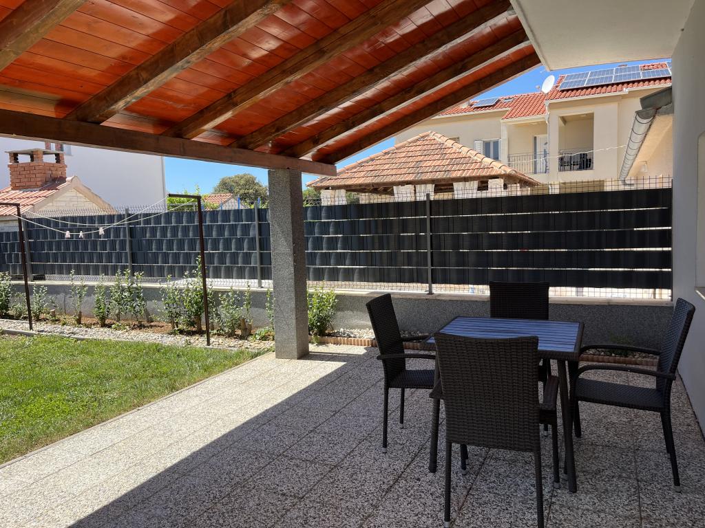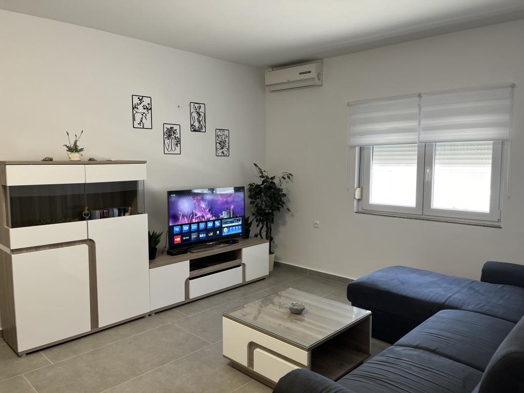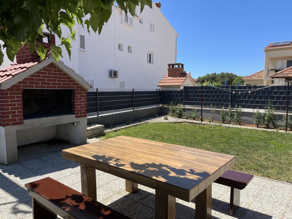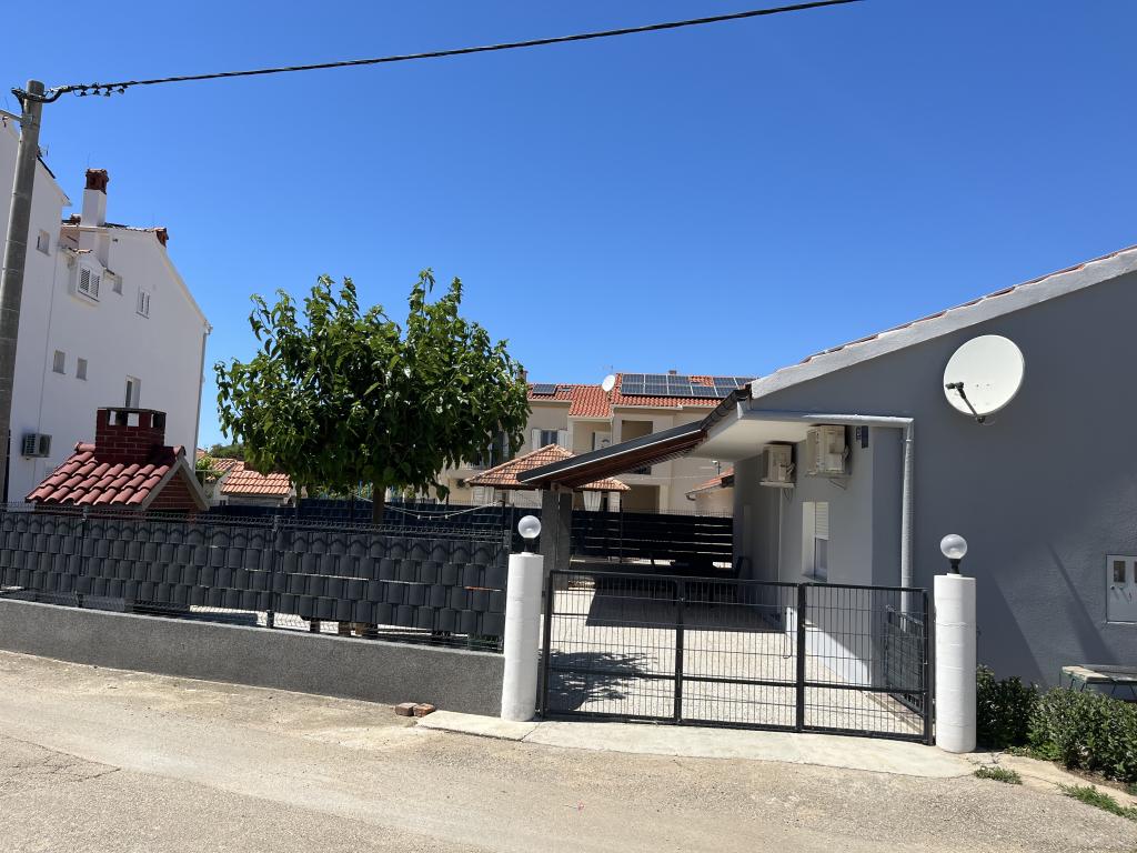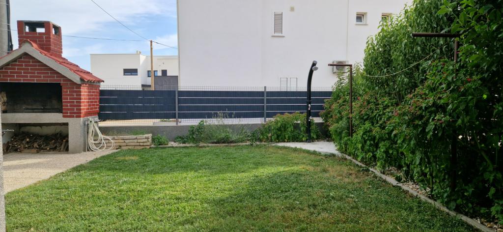 House with a fenced yard near the D-Mol marina. Fully furnished and air-conditioned, suitable for families with pets. Garden shower, grill, quiet neighborhood with little traffic. The house is located a three-minute walk to the first beach and a five-minute walk to the town center. Parking for a car in the yard under a canopy. Natural shade in the yard with a table in the shade. Garden furniture. Internet and wood for the grill are free.