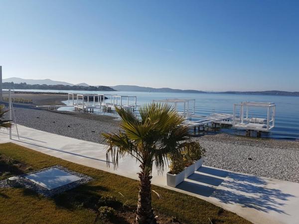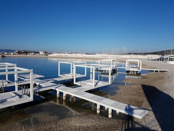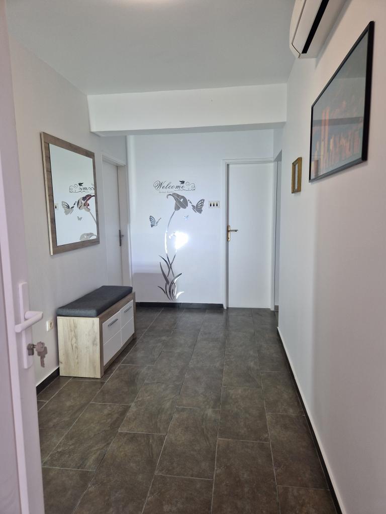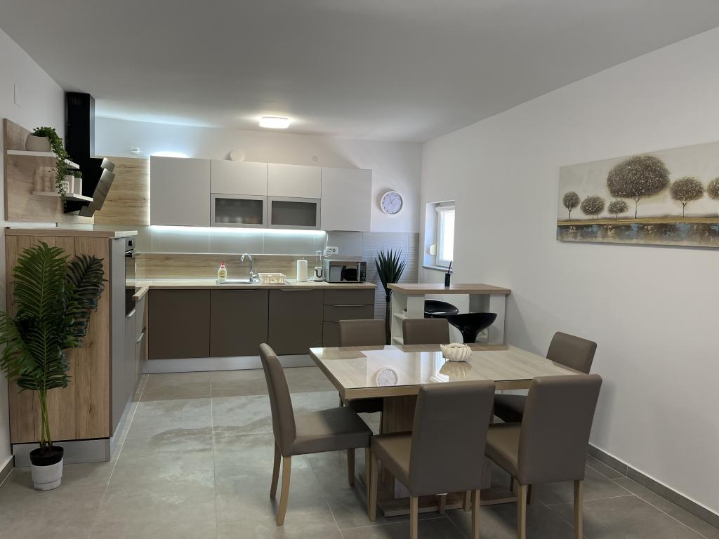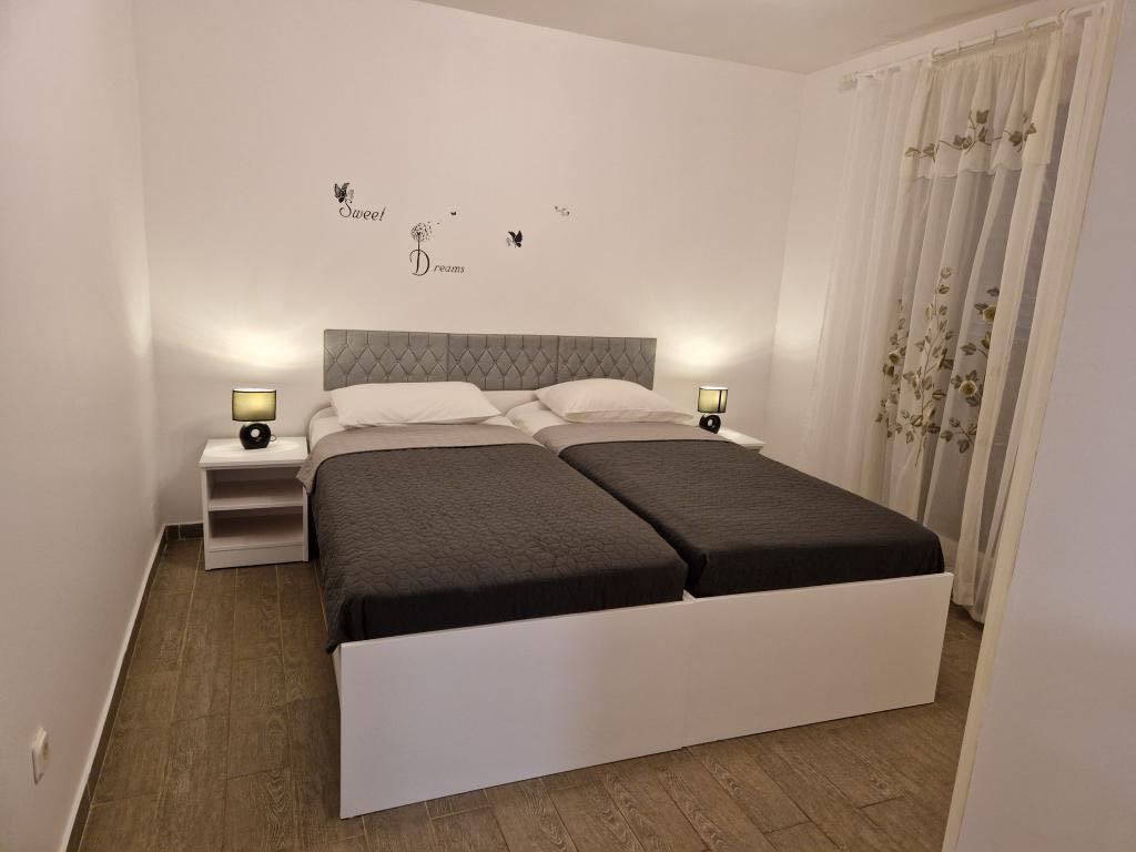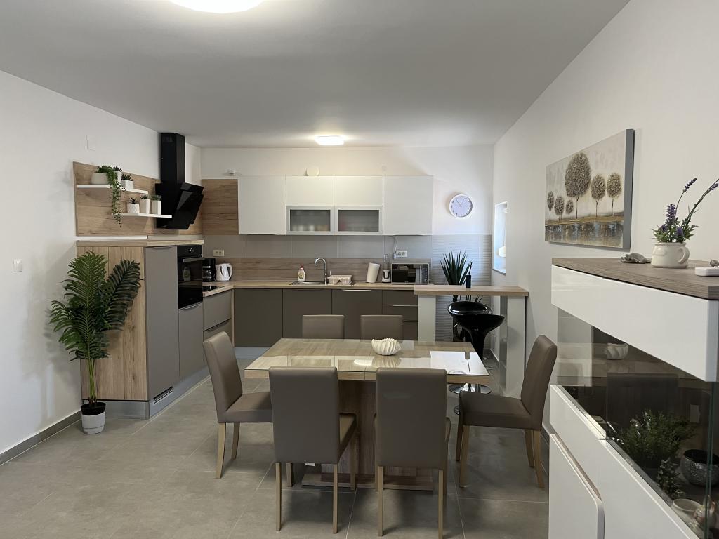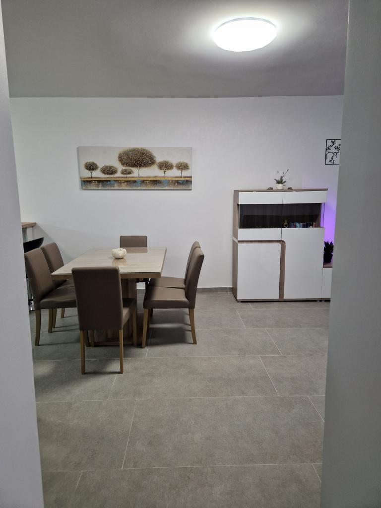 House with a fenced yard near the D-Mol marina. Fully furnished and air-conditioned, suitable for families with pets. Garden shower, grill, quiet neighborhood with little traffic. The house is located a three-minute walk to the first beach and a five-minute walk to the town center. Parking for a car in the yard under a canopy. Natural shade in the yard with a table in the shade. Garden furniture. Internet and wood for the grill are free.
