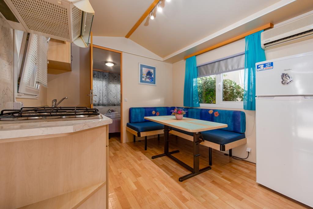 Let the beach be your living room 😃 Mobile homes Mrkva are located in Sukošan just a few meters from the beach and offer their guests the opportunity for a peaceful family vacation. A heated swimming pool with hydromassage jacuzzi is at your disposal. Deck chairs by the pool are an ideal place to relax. The camp has 4 mobile homes. Each cottage has a large terrace and has an equipped kitchen (fridge, stove, dishes...), LCD television, air conditioning, toilet, etc. Free parking and WI-FI internet are provided for each cottage. Near the apartment there are shops, restaurants, beach bars, children's playgrounds, fast food... The host is always at your disposal and you can ask for the information you are interested in, as well as arrange an excursion, transfer, rent bicycles, etc.
