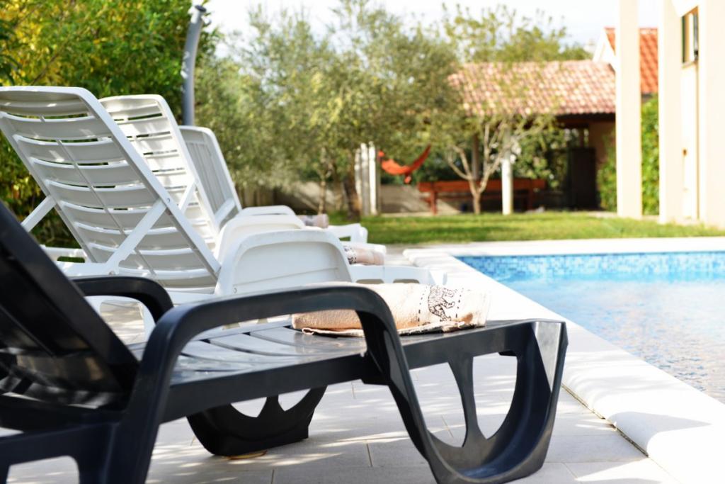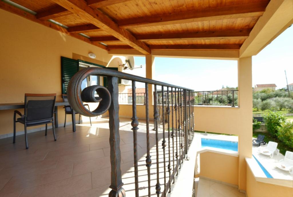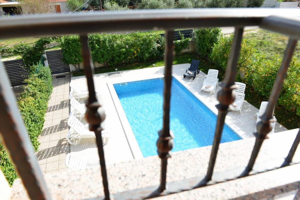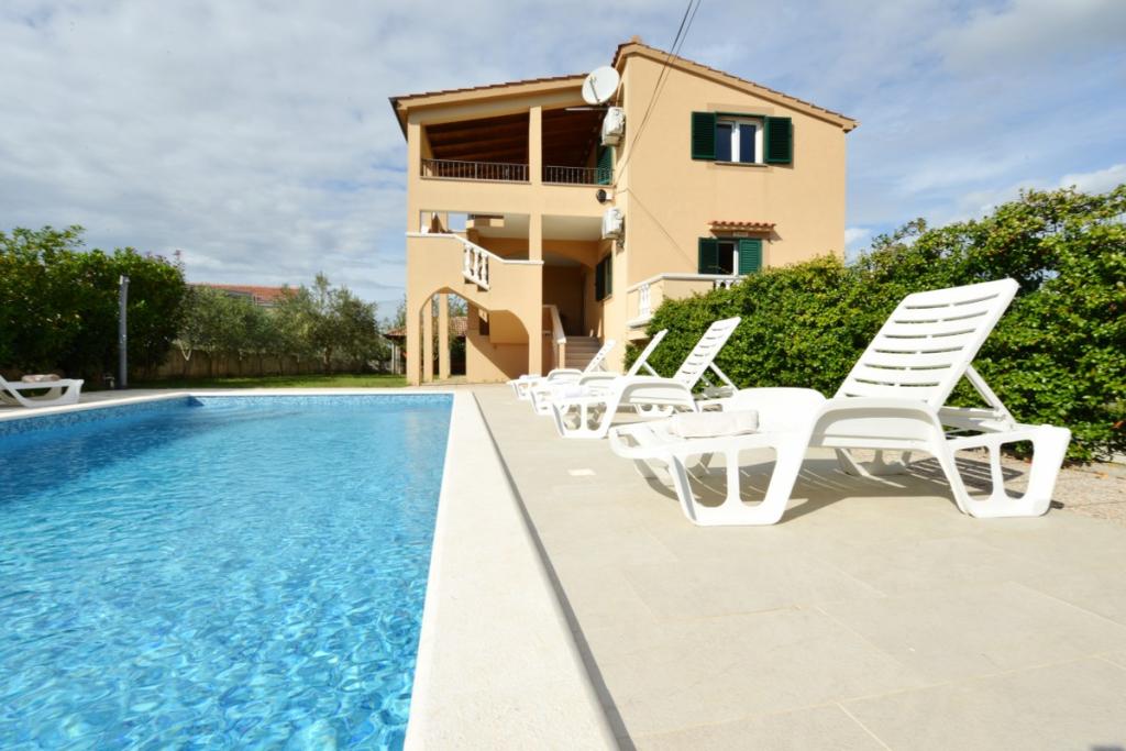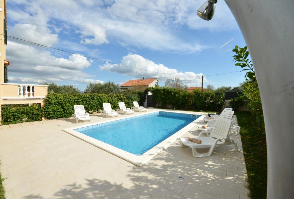 Fully and modernly equipped villa for a family vacation with a swimming pool measuring 8 x 4 meters in the hinterland of Sukošan. The house is located in a very secluded and quiet place 4 km from the beach and 15 km from Zadar, with which it is connected by a highway (10 minutes). The property is a two-story house consisting of one triple and three double bedrooms, two bathrooms, two living rooms and two kitchens, two balconies and a separate barbecue house, and a canopy in front. The property offers a beautiful view of Velebit and the Ravna Kotar region, and just a 4-minute walk away is a position (100m above sea level) with a panoramic view of Sukošan, the islands of the Zadar archipelago and a wonderful sunset. The house has unlimited and free wireless internet, free parking spaces, organically grown vegetables that are available to guests. By arrangement, the possibility of preparing traditional Dalmatian specialties.