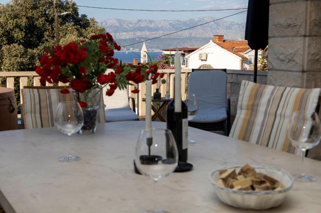 Residential tax is included in price.Free transfer upon arrival at a port in Supetar! - Just send us your exact arrival time via email or by calling on mobile phone, free Wi-Fi internet in the house, a welcome drink, fresh bed linen, blankets and towels, terrace with a beautiful view of the sea and the whole panorama of the city and ferry from the coast to Trogir Makarska, Free maps, information, travel advice and assistance with travel arrangements, free luggage storage for late check out, the staff speaks English, Biblijoteka, Parking, Laundry and drying laundry, preparing dinner, exploring the city and the island
