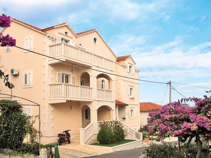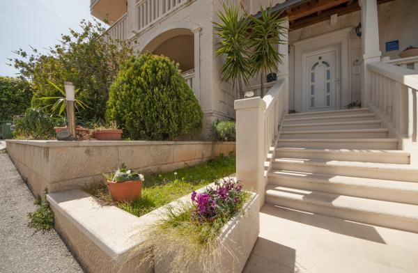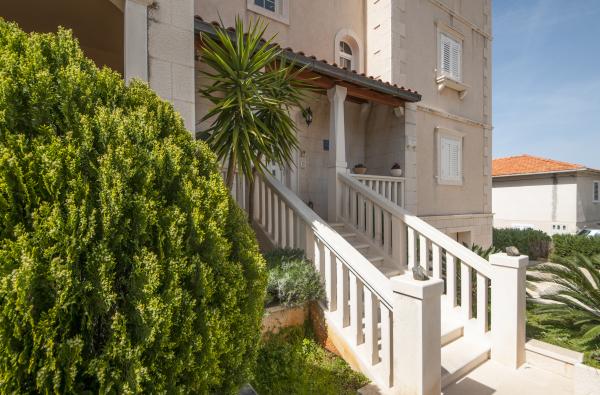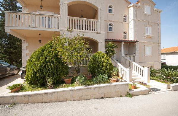 New house with a total of 4 apartments, Villa Maria, is located in the residential and recreational area of Supetar in the immediate vicinity of the center with a wide range of sports and entertainment facilities. Tennis courts 150 m away, shopping 200 m, pebble beach and restaurant about 350 m, city center about 800 m. Partially fenced with a stone wall, about 600 m² of land with plants and greenery. . Parking is provided for all guests. Each apartment has a covered terrace / balcony with furniture, and some have a sea view.