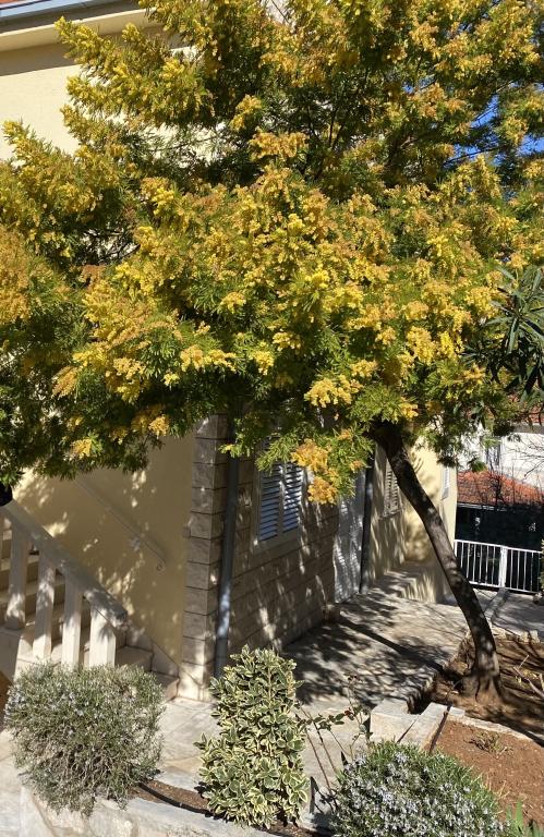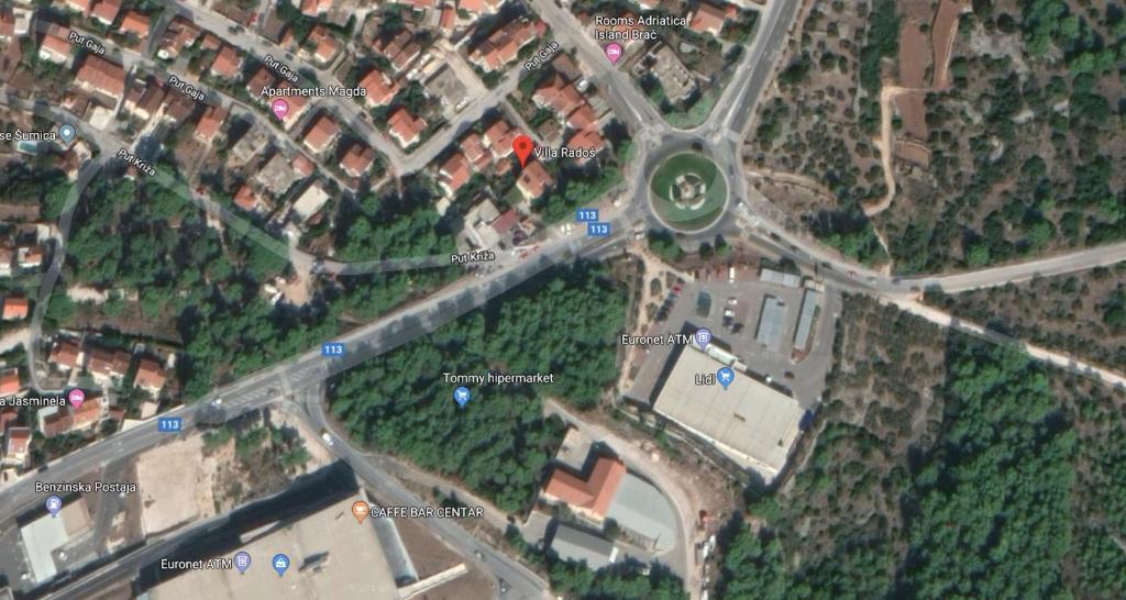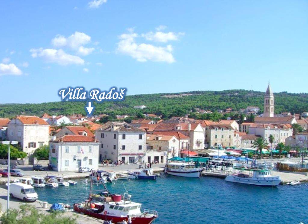 VILLA RADOŠ, 4 stars, is located in the eastern part of Supetar across from the green belt. It is only a few minutes' walk from the center and the beach. It has a total of 4 apartments: 2 storey 4-room apartments for max. 6-8 persons, 1 double room for max. 2-4 persons and 1 studio for max. 2 persons. All our apartments have large, fully and modernly equipped rooms and thus enable a leisurely vacation. Each duplex apartment has 3 bedrooms (2 triple and 1 double), the basement apartment has 1 triple room and a living room with a couch, and the studio has 1 double room with a couch. Each duplex apartment has 2 bathrooms, a modern kitchen (toaster, coffee maker, microwave oven, dishwasher...), a living room (SAT-smart-TV, hi-fi, DVD, etc.), and a large terrace and balcony. , and on the ground floor a large garden with various flowers and citrus fruits. Smaller apartments each have 1 bathroom and new equipment. The parking lot for 6 cars is in front of the main entrance, and right across the street are the biggest supermarkets LIDL, TOMMY and KONZUM.