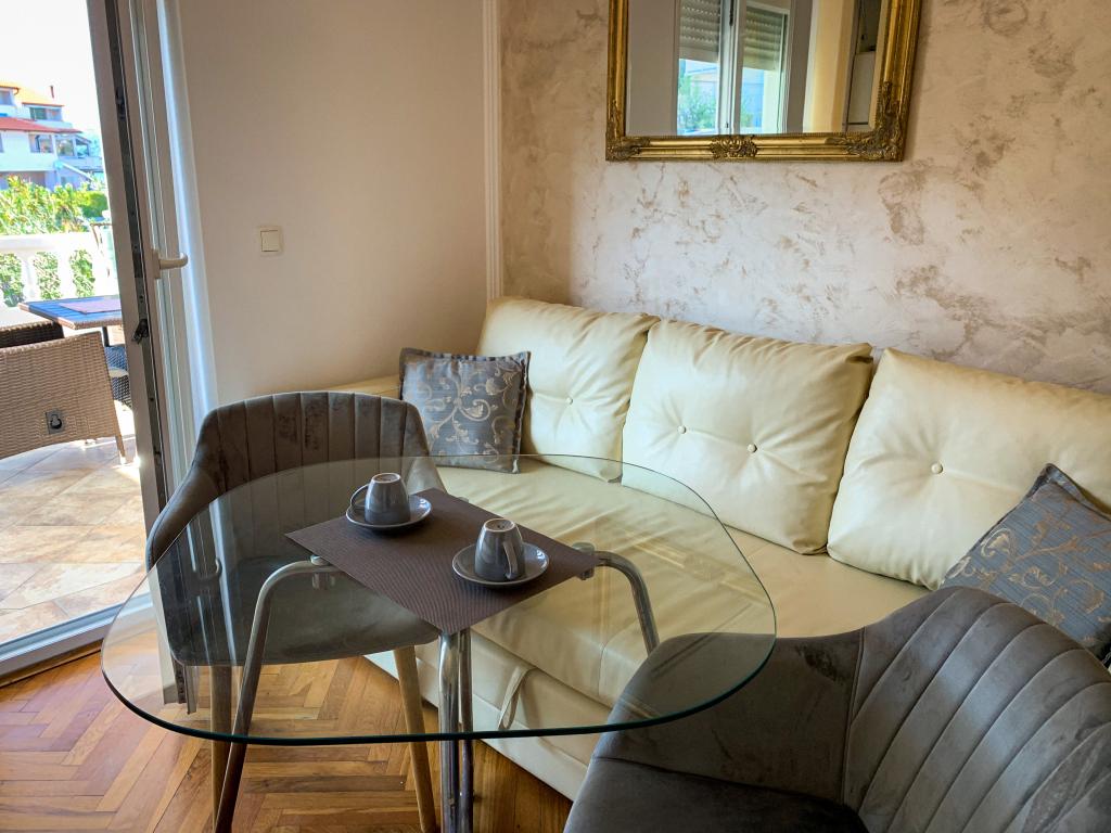 Read more Accommodation unitsIn order to mutually secure the reservation, an advance payment of 20% is required. The rest of the bill is settled upon arrival by agreement: either by bank transfer or cash. The apartment rental price includes basic beds, energy, bed linen, towels, air conditioning, taxes. The price of the room (numbers 2 and 5) includes breakfast for 2 persons. Each guest in the apartments or studios can receive breakfast, lunch and/or dinner for an additional fee. The price does NOT include: additional persons, mooring for boats.
