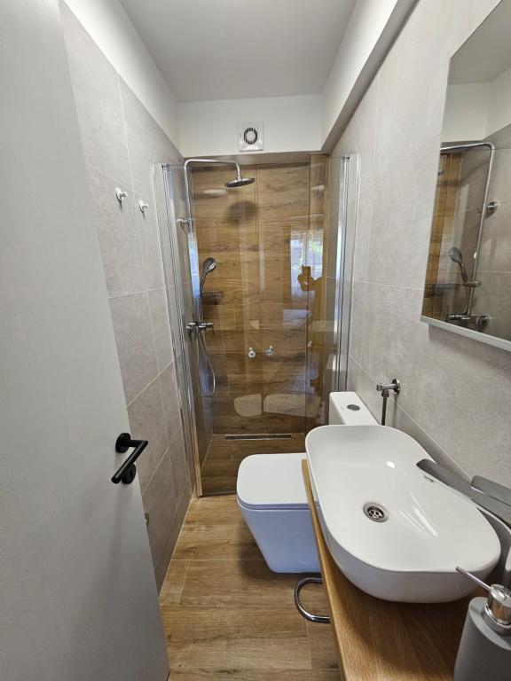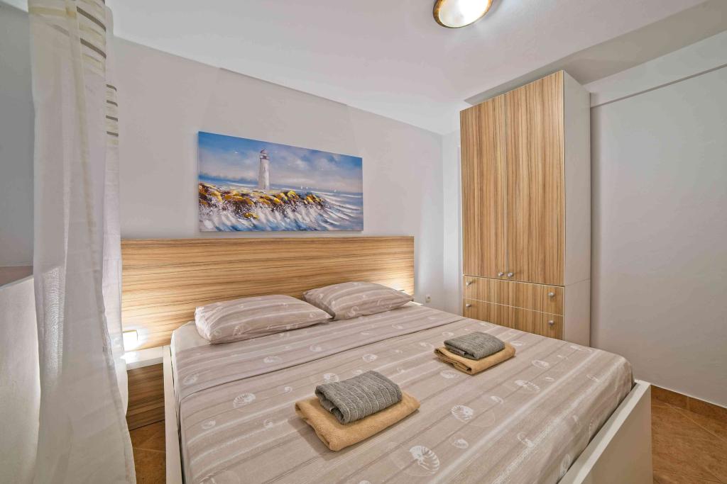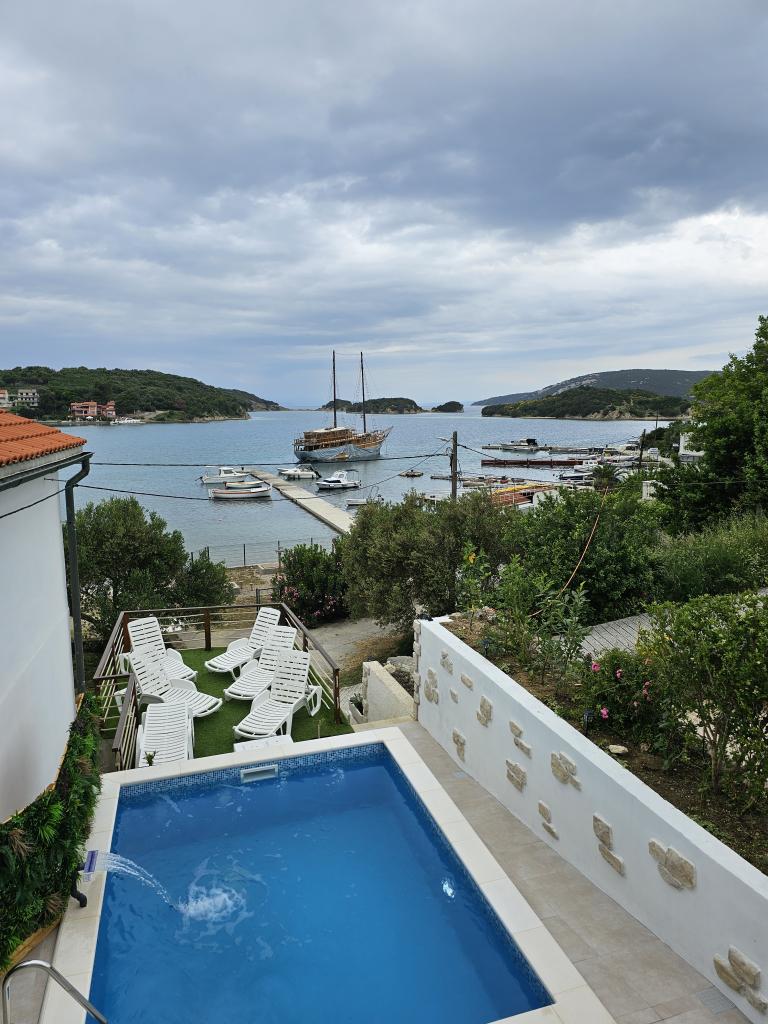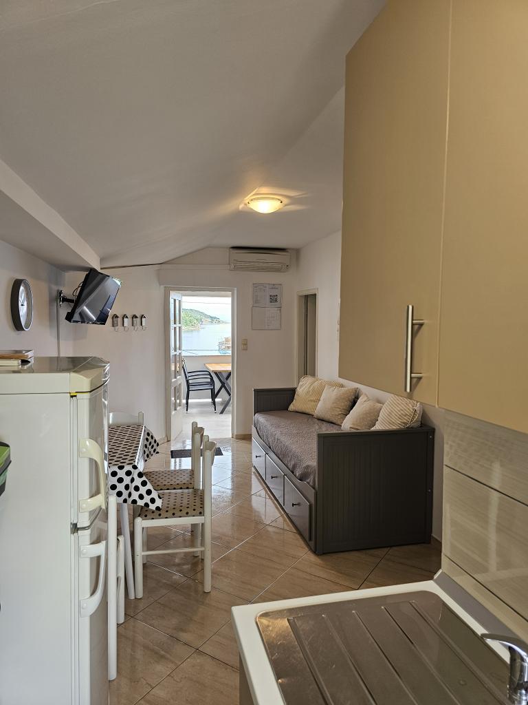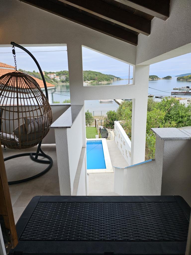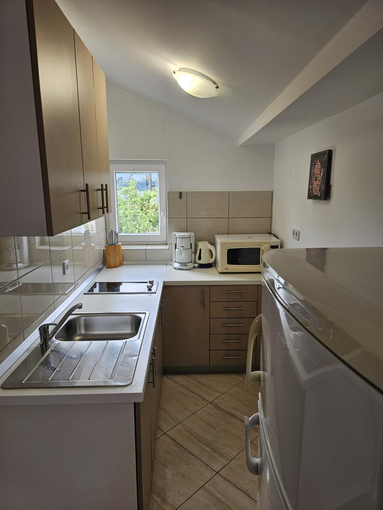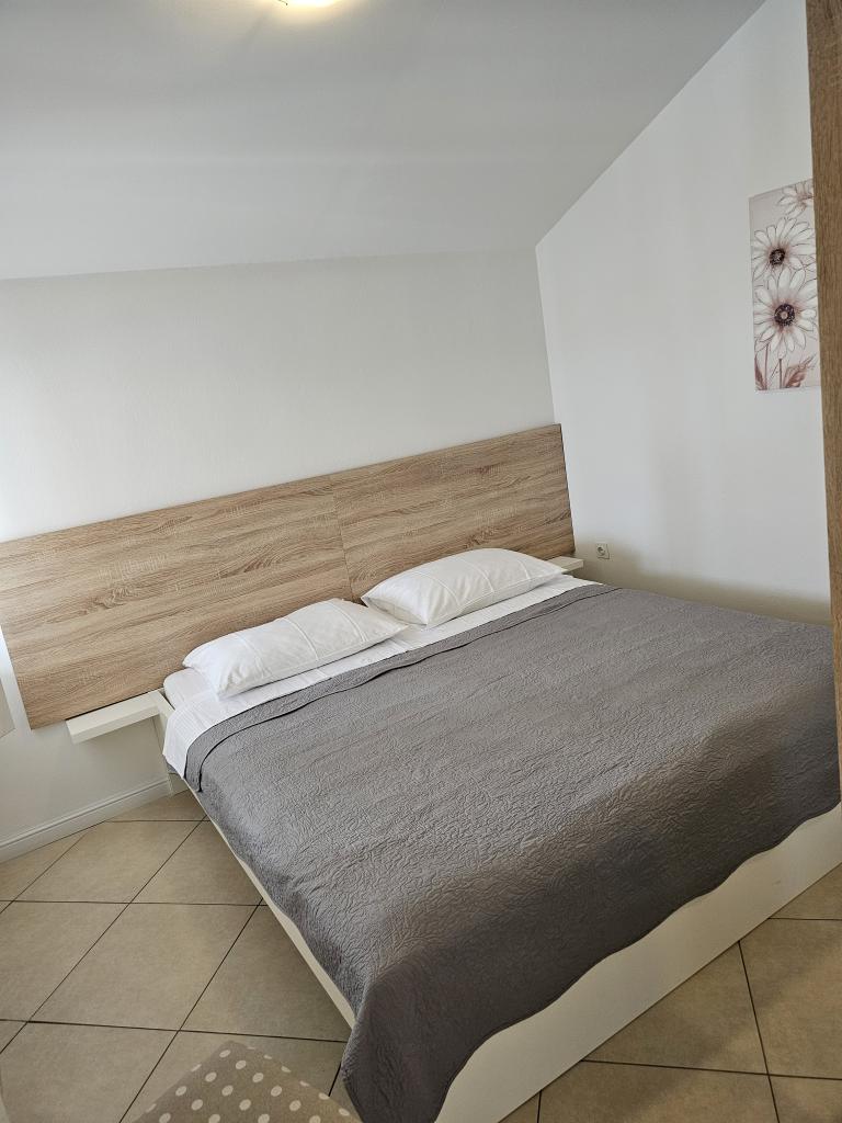 We spent two wonderful weeks there with two families. A total of four adults and four children aged 8 to 12 years. The apartment is very well equipped, clean, nice, great location. Two fantastic terraces with a beautiful view. Situated directly on the sea with sandy bottom and shallow, the kids could play safely on the shore. Shop next door 20 m, and a few kilometers farther bigger market and shopping center. At the sea bar and a restaurant, so you can eat something during the day. Recommendation Top. Great!!!