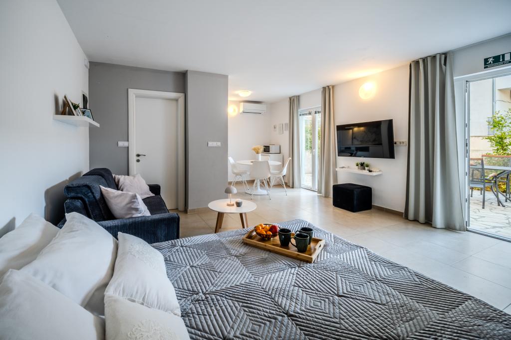 Newly decorated apartments with a 4-star rating are located in the quiet area of Sutivan. Each apartment has a large terrace and includes: wi-fi, air conditioning, satellite, LCD TV, dishwasher. They are located 10 minutes walk from the center, post office, restaurants, shops and 100 m from one of the most beautiful pebble beaches in Sutivan.