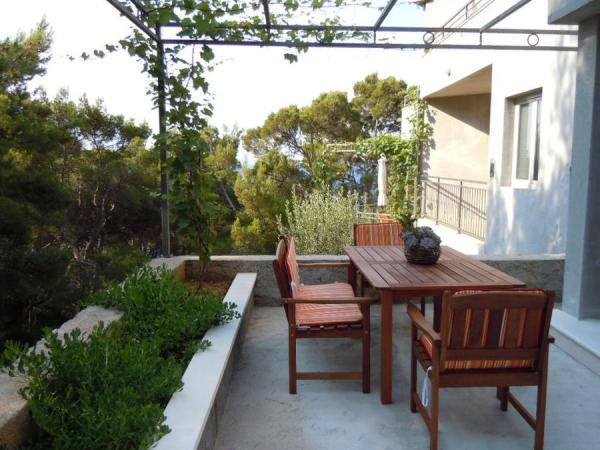The newly built family house in Sveta Nedjelja on the island, located in a quiet area, 150m from the sea surrounded by a beautiful pine forest overlooking the sea and the island Hvar, with a wonderful view of the top of St. Nicholas and the picturesque vineyards at the foot of the hill. The house has five spacious suites consisting of a living room, kitchen and bedrooms. The apartments have separate entrances, spacious terraces and balconies, in addition to each apartment has a parking space. The house still has outdoor fireplace that is at the disposal of our guests. A beautiful Mediterranean atmosphere and the hospitality guarantee your unforgettable holiday.