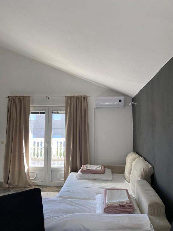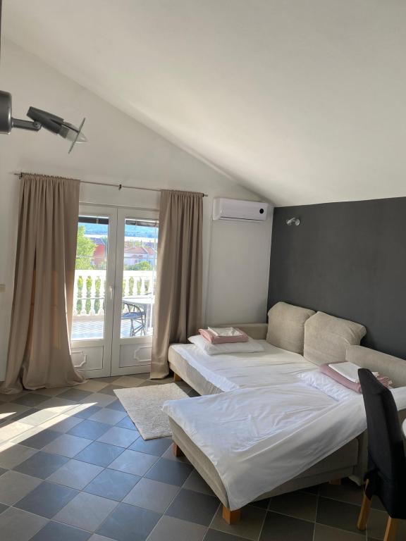 Rent three apartments within obiteljsljske house close to town and beach. Two apartments for four people are on the floor, the third apartment 110m2, 6 + 2 on the ground kuće.Apartmani 2 +2 have one double bedroom and two additional beds in the living room, kitchen, terrace with sea views, satellite TV and wireless internet. Apartment for eight people with three bedrooms and two additional beds in the living room, kitchen, bathroom with shower, toilet, terrace with a view view.Apartment is air conditioned. All our guests have parking in the yard, and access wirless network.