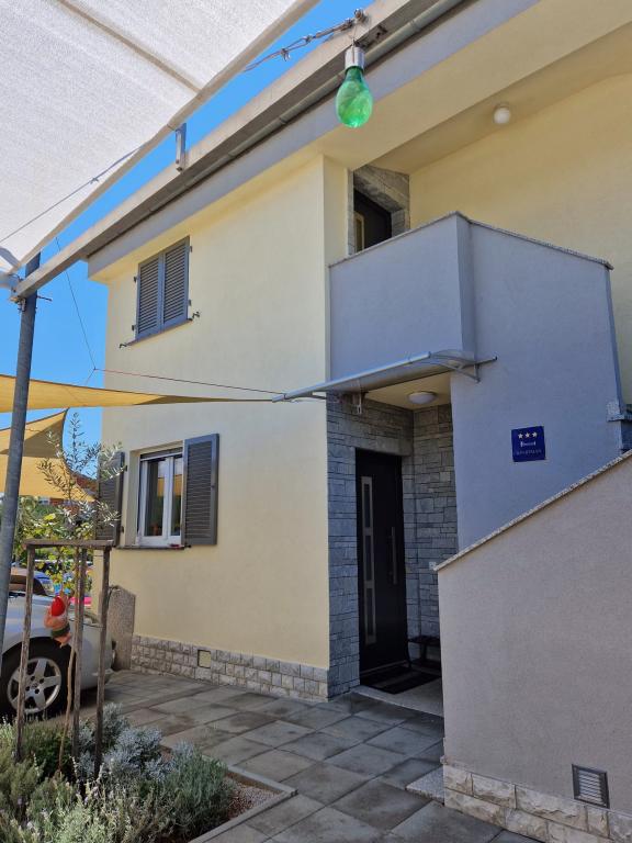 The entire upper floor of a family house is for rent, with internet, air conditioning, TV, two bedrooms with bathroom, living room with kitchen and terrace, covered parking space, grill, bus stop in the center of Filip i Jakov, 250m walk to the beach, 100m to shops, restaurants, pharmacy, shopping center 500m. The beach is sandy, one part fine sand, free, there are various activities for young people and children and restaurants. Nightlife: walking along the sea, music in restaurants or on the waterfront, for children an amusement park and train "Tomica and Friends", 3km Biograd na Moru for even more fun or 26km Zadar. From Filip i Jakov there is the possibility of a one-day trip to the Kornati Islands, Krka Waterfalls, Vrana Lake, the old town of Zadar, Fun Park in Biograd and even Plitvice Lakes, etc. You don't need a car to stay and relax here, everything can be done on foot. You can come by bus directly to the house or by plane to the airport Zemunik near Zadar (25km). If our owner is not there then usually the guests are alone in the house