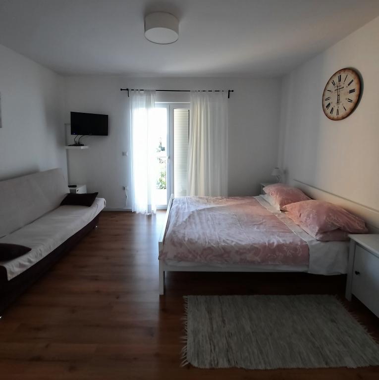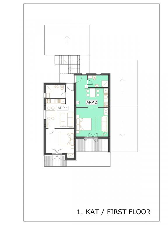 One bedroom apartment (APP 1) and large studio apartment (APP 2) with 4 *, both of 38 m2, terrace with sea view, on the 1st floor of a family house. In a quiet part of town, close to sandy and pebble beaches at 100 m distance. Fully equipped. Ideal, comfortable accommodation for two people or a couple with children.
