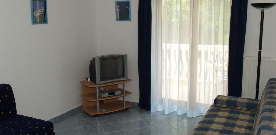 Perfect place for a family vacation, apartments Maver, located in a quiet pleasant environment, only 90 m from the sandy beach, in the countryside. For shared use: garden (fenced) with lawn, plants and flowers, lawn sunning area, garden furniture, barbecue. Parking by the house, in the yard.
