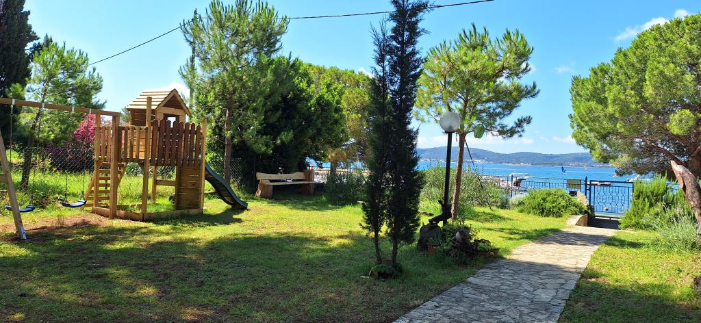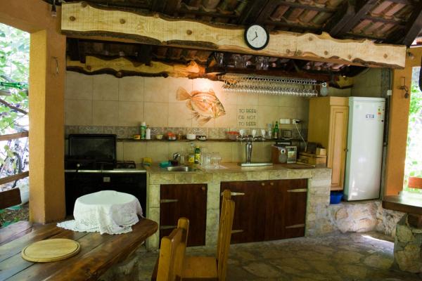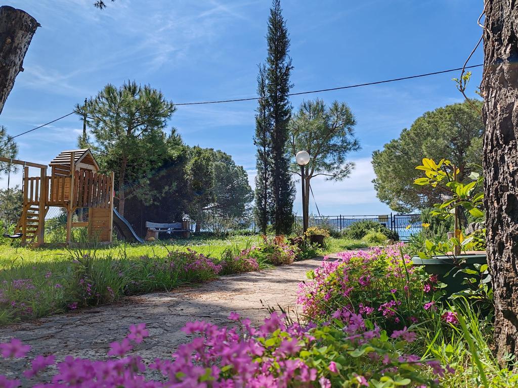 Park Apartments are located in an old pine forest by the sea, 30 m from the sea and about 50 m to the beach! In the shade of a large fenced yard there is table tennis, gazebo with barbecue, outdoor kitchen, bar and a fridge, swings and playground for children and parking.