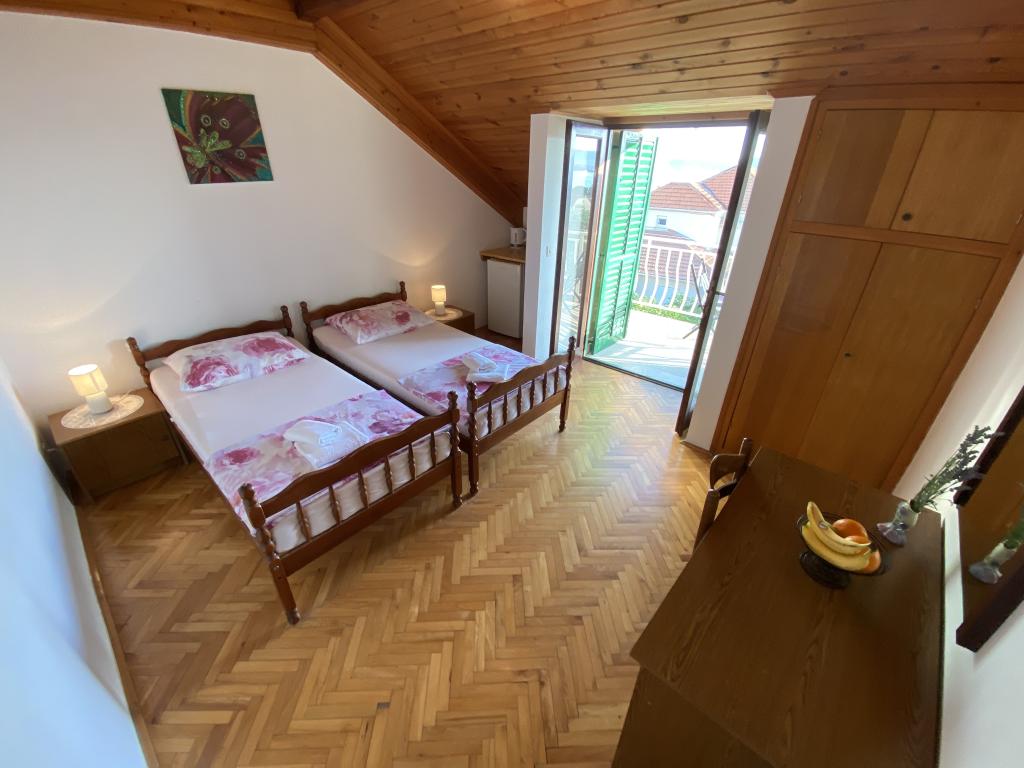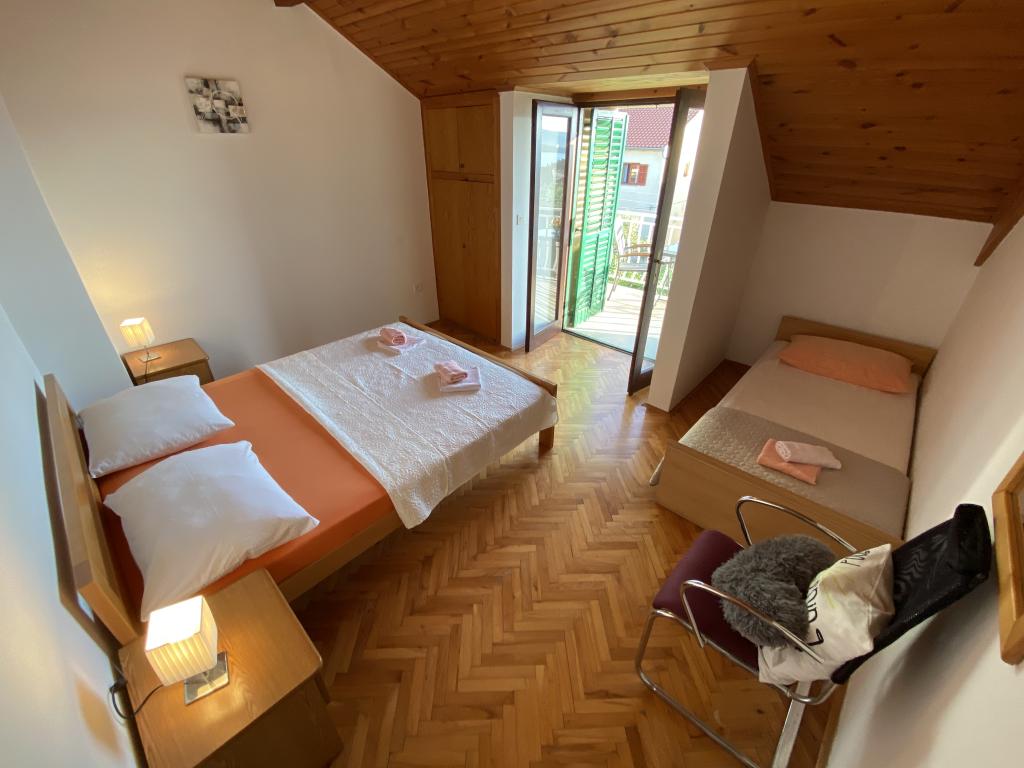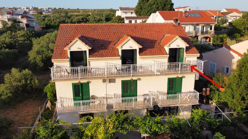 Apartments are located in Sv. Filip and Jakov first row to the sea, 5-10 min from the center and 5 min to the sea. In the yard there is a grill and a large dining table which is available to all guests. The offer includes parking. Apartment 4 2 - Apartment consists of two bedrooms, toilet and bathroom, living room and kitchen. It has two balconies overlooking the sea. Includes electric kettle, oven and microwave, in the living room there is a corner set, tv and air conditioning. In one bedroom there is a double bed and a large closet. In the second bedroom there are two single beds and a large closet, the room has a balcony. Apartment 3 1 - Apartment consists of one bedroom, kitchen, living room and bathroom with toilet. In the bedroom there is one double bed and one single bed. The room has a balcony with a sea view. Includes water cooker, air conditioning and TV. Room - There are two beds in the room, air conditioning, fridge and cutlery. The room has a balcony.