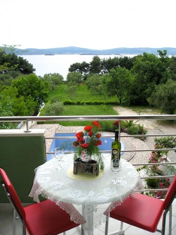 Villa "Smirna" 4*, SWIMMING POOL, 1 ROW, VIEW Zadar region, Biograd na moru - Sveti Filip i Jakov, BEAUTIFUL BEACH, NATURAL GREEN, 8 DIFFERENT TYPES OF APARTMENTS, large yard, deck chairs, barbecue, greenery, give it special charms. All 8 DIFFERENT TYPES of apartments overlook the sea and islands. It is located in the first row to the sea. Access to the sea is sandy and pebbly, and the landscaped beach has showers and natural greenery. In the yard there is a barbecue, space for socializing, : Categorization 4* Reception Private parking Distance from the beach: 75m Distance from the shop: 25m Distance from the restaurant: 50m Distance from the center: 300m Distance from the hypermarket: 2km Distance from Biograd: 2km Distance from Zadar: 25km Krka waterfalls: 30km Kornati: 30km Rafting on Zrmanja Island tour by boat Split Međugorje Drubrovnik FACILITIES: Swimming pool (the pool has sea water, swimming without jumping is allowed from 8-20 h) Yard Sunbeds Tables and chairs around the pool Kavomat Bicycle rental Dučan 50 m Housekeeping in apartments