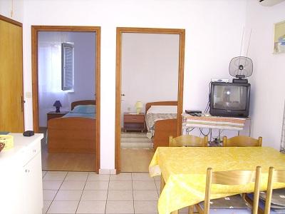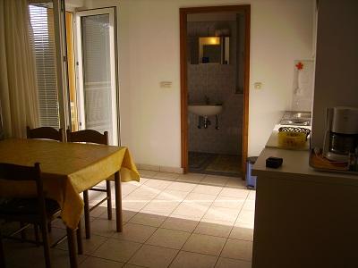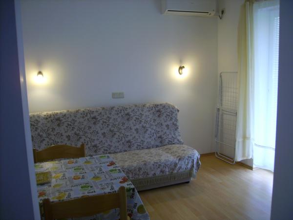 The apartment is in an older, well-maintained building, it is very spacious and practically designed, there is a huge fridge, plenty of dishes and a dryer on the balcony, and functional air conditioning. The balcony has a sea view and it is very close to the sandy beach, max. 100 meters. The lady of the house is very helpful, she accommodated us right at 5 in the morning! The apartment is surrounded by a well-kept garden and complete tranquility. The only thing I would add is a parasol or an awning for the southern balconies so that they can be used better, otherwise everything is absolutely perfect.