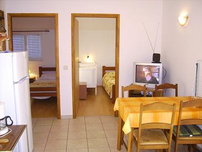 The apartment is just above the sandy beach that has the most shade in the whole town. It has air conditioning. The kitchen is rather poorly equipped, the refrigerator is too small and does not fit a lot of food, a small freezer, and the shelf on the door of the refrigerator was scrapped so that it could not be used. The apartment was poorly cleaned, especially the bathroom we cleaned ourselves before use, a closet in a room full of dust. The yard is large but with no contents so it cannot be used.