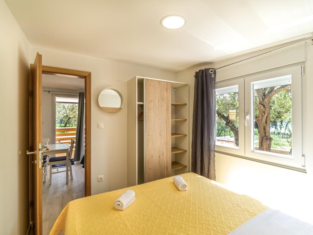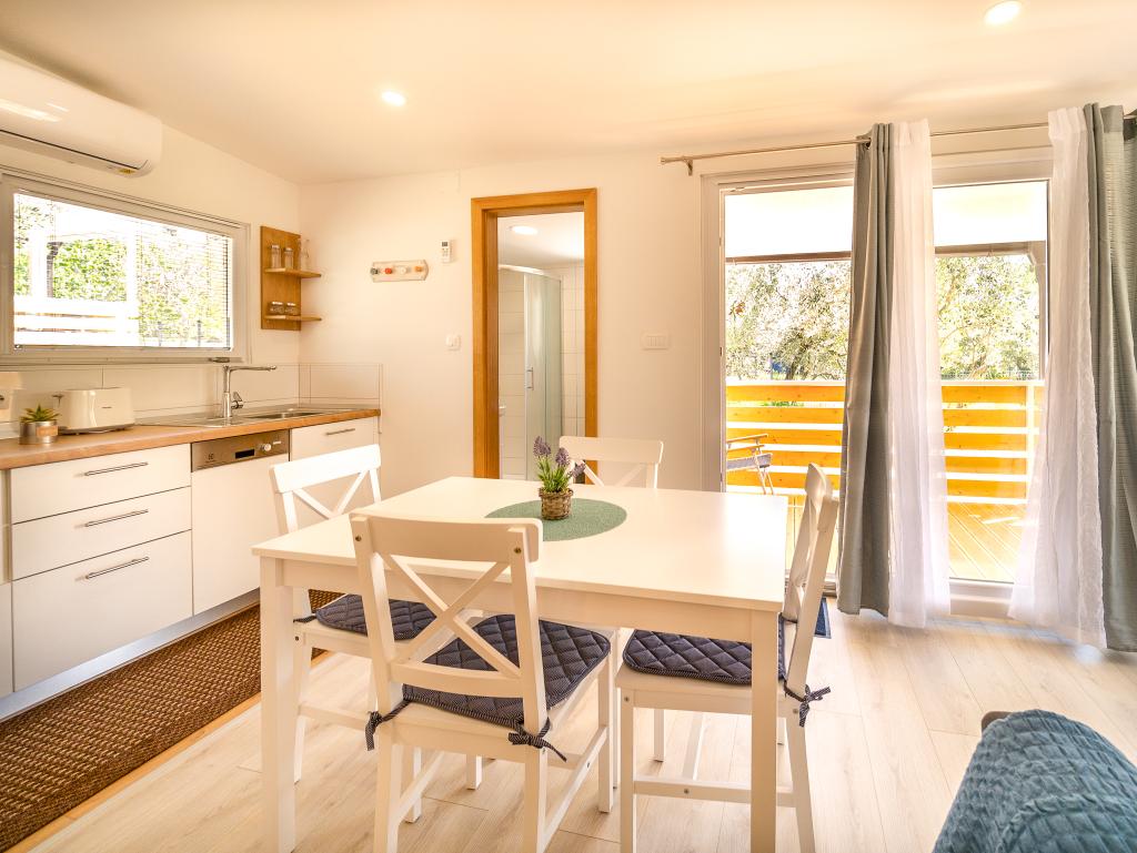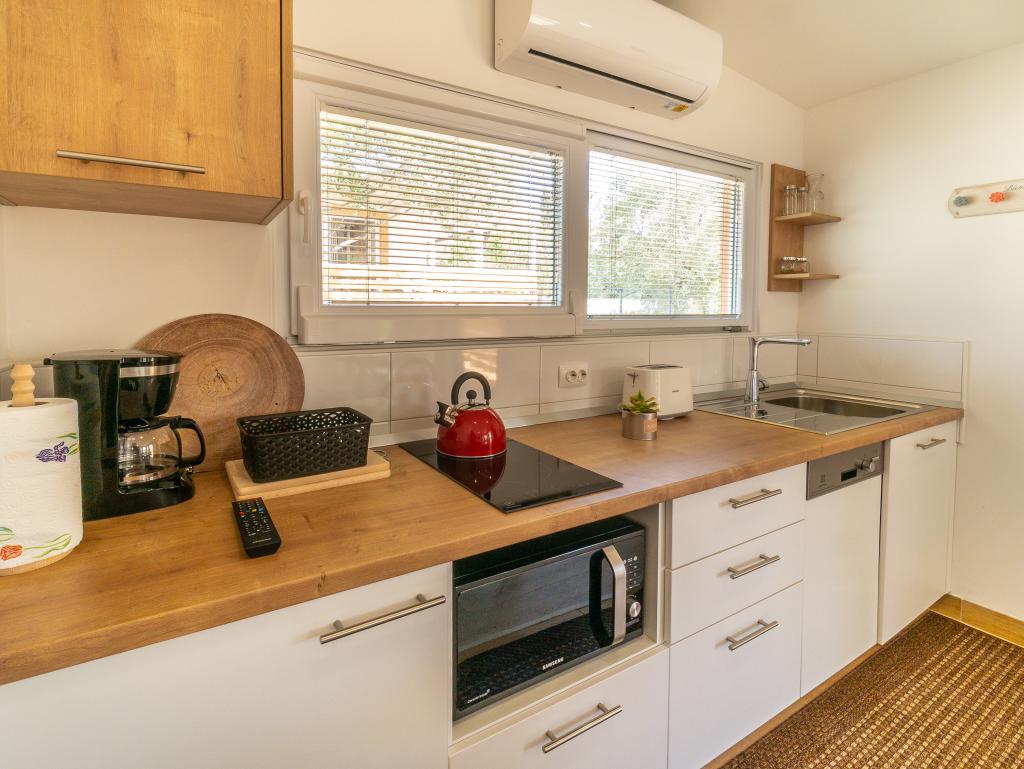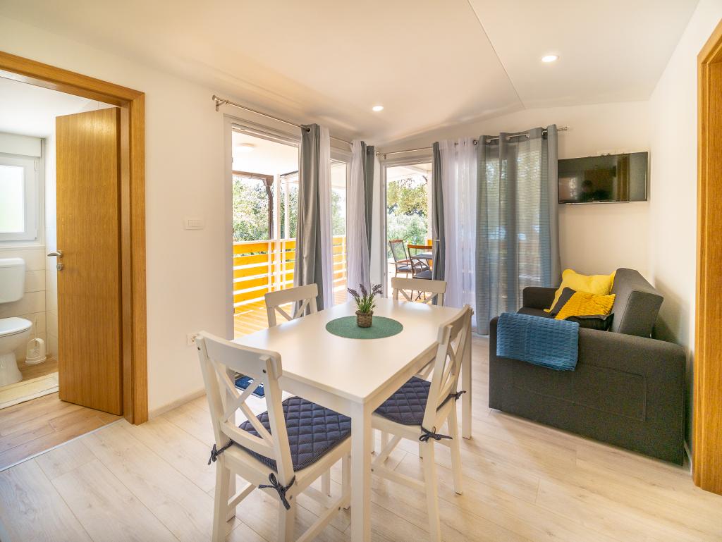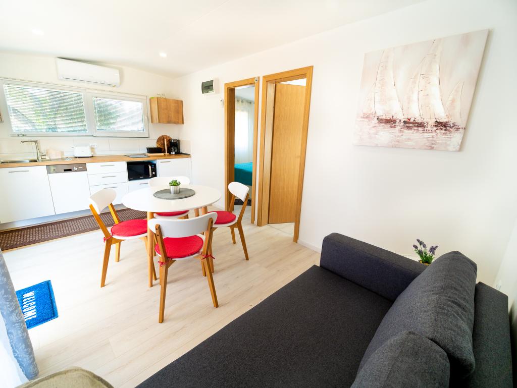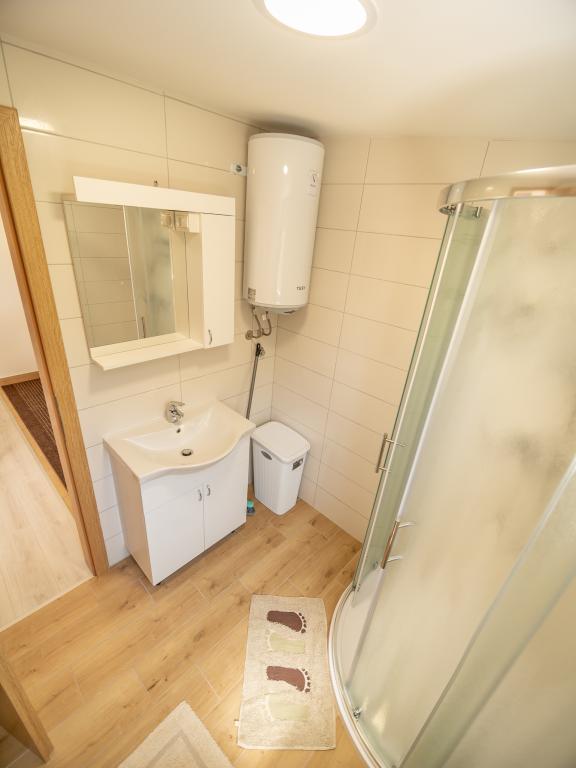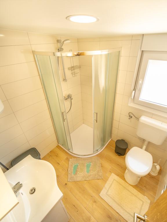 Newly built apartment in a beautiful and quiet area in Sv. Filip and Jakov first row to the sea, sandy beaches about 50 meters away, and the same weave has pebble beaches. The apartment is connected to the family house, the building has its own garden and parking. The town center is a 5-minute walk away, as well as the necessary facilities such as a shop, post office, sports field and a doctor. New in 2019 are 3 prefabricated houses in a row for 4 people, 40 m2 with terrace, highly equipped facilities, air conditioning, 2 bedrooms with bed 160x200, living room, kitchen, bathroom, TV, satellite, W-fi, and protective mesh on the windows (mosquito net). Separate privacy of each building with barbecue and parking. The property has an additional toilet with shower. A washing machine and dryer can be used at an additional cost. A deposit of EUR 100 is required upon arrival, in case of any damage, and will be refunded upon departure.
