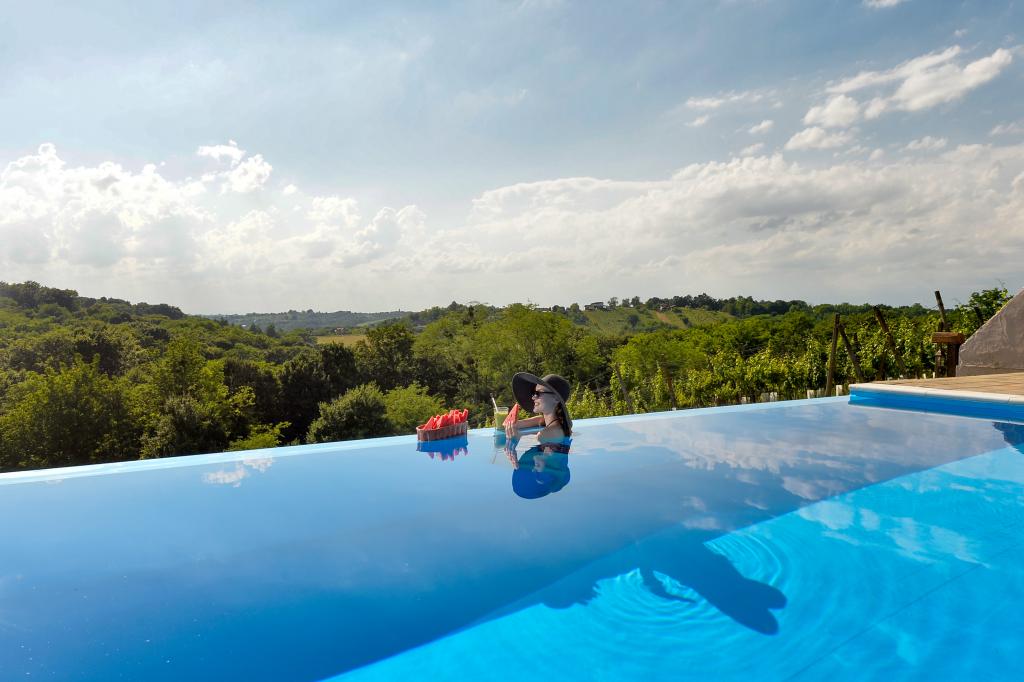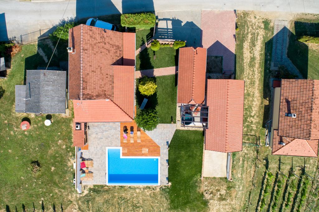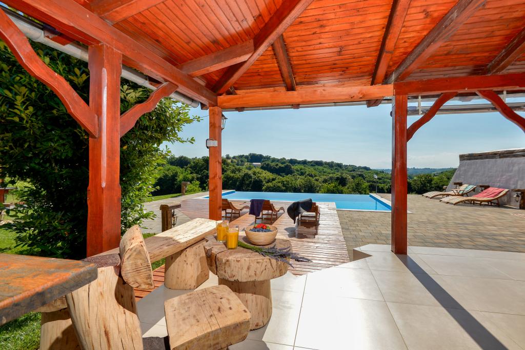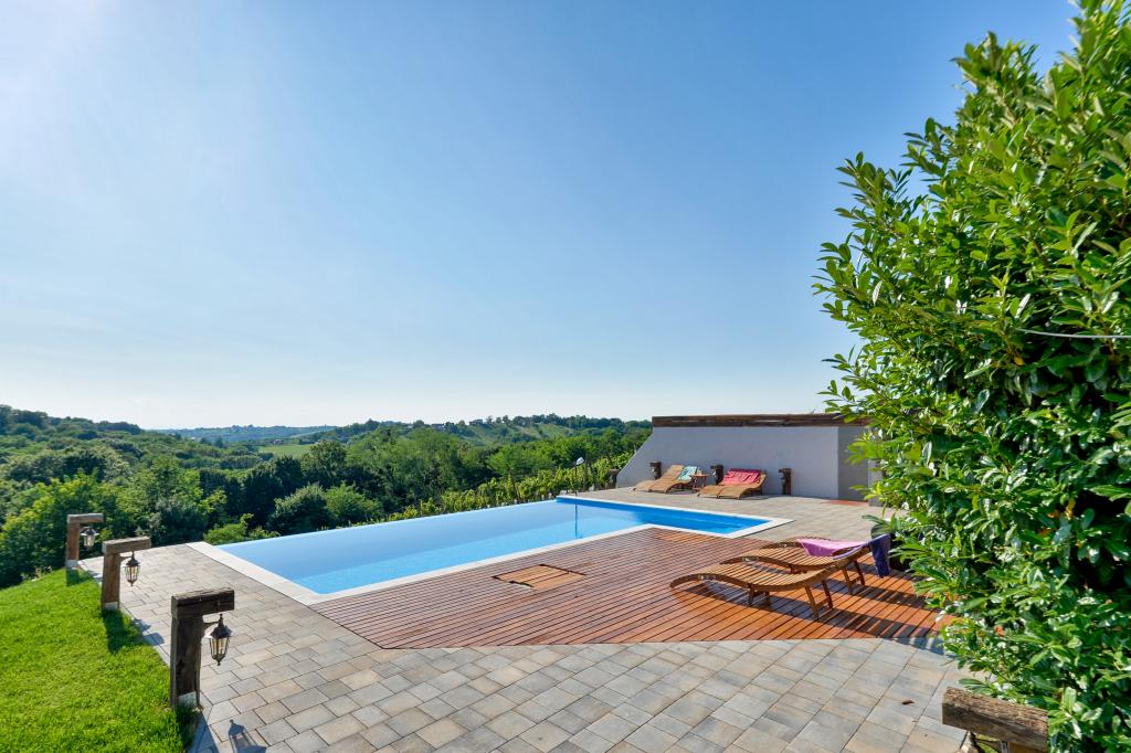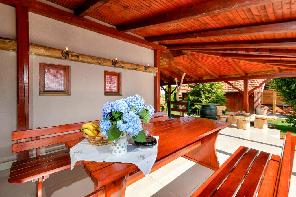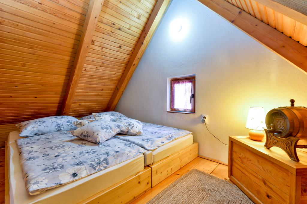 An ideal vacation from busy everyday life. The holiday home Holiday Home Dika in Kapelščak consists of two houses, one next to the other. We can accommodate up to eight people in four bedrooms, with three large double beds and two separate beds. Two kitchens inside and one outside make it possible to prepare fine food. We offer a large outdoor grill on a spacious terrace ready for family get-togethers. The sauna completes the stay in the house, and in the charmingly decorated yard is a jacuzzi pool with heated water. There is also an infinity pool with a wonderful view of nature. In the summer you can feast by the outdoor fireplace, and in the winter you can warm yourself by burning in the potash stove or just turn the thermostat and turn on the heating. In the basement of the house you will find bottles of carefully selected wines from Međimurje winemakers, with the possibility of tasting a divine drop of our climate. Next to the house there is a yard, an orchard and a forest. A pleasant walk through the beautiful nature of upper Međimurje will take you to the LifeClass Terme Sveti Martin in 25 minutes.