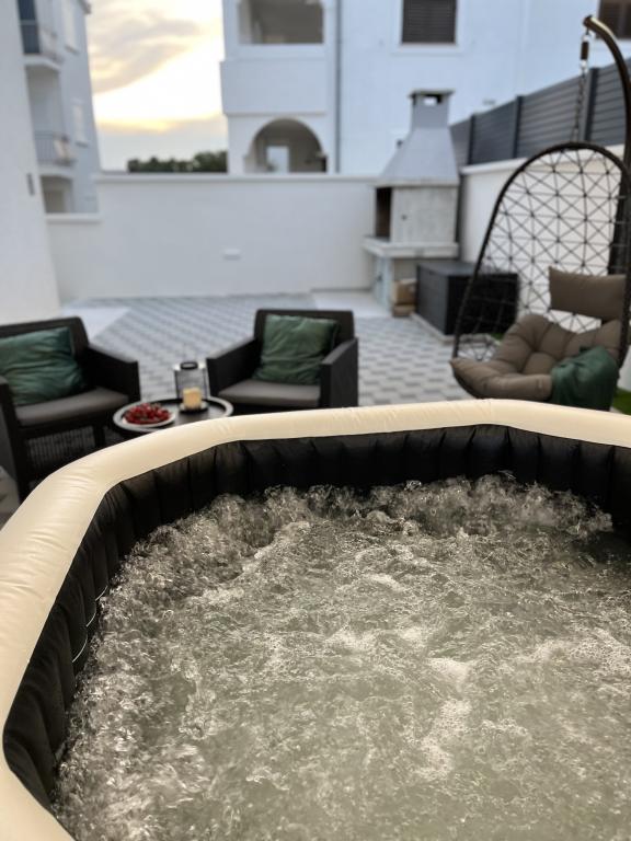 The new luxury Four Stars apartments are located in Sveti Petar na moru, between Biograd na moru and Zadar. The apartments are located first row to the sea, 40 meters from the pebble beach. All apartments are air-conditioned and soundproofed. There are mosquito nets on every window and balcony door. The entrance door of the apartment is fire-proof and burglar-proof, flat-screen LCD TV with satellite programs, free WI-FI. From your balcony you can enjoy a wonderful view of the sea and the island of love - Galešnjak. The offer includes free private parking, and a barbecue behind the house, as well as a jacuzzi hydromassage pool that provides full content to our facility. In short, Four Stars apartments offer you the perfect vacation and escape from busy life. If you are looking for adrenaline fun, you have at your disposal the fun Dalmaland Fun & Water Park in Biograd na moru (11 km). Nearby is the city of Zadar (17 km), which is full of historical content. Well, the decision is up to you, and we are looking forward to seeing you :)