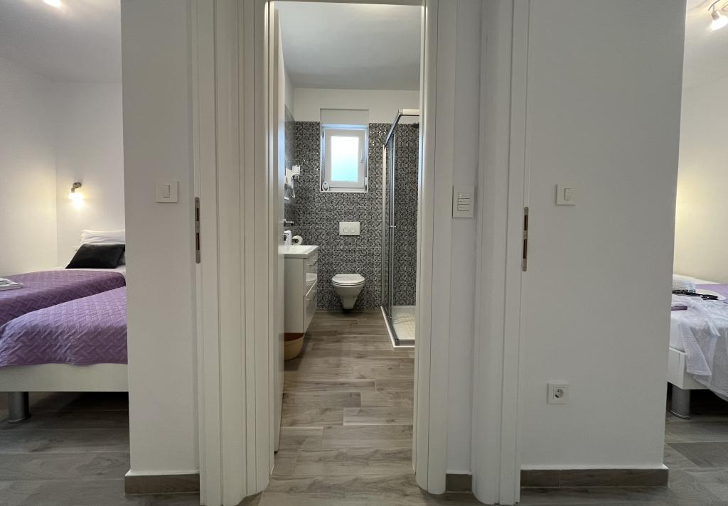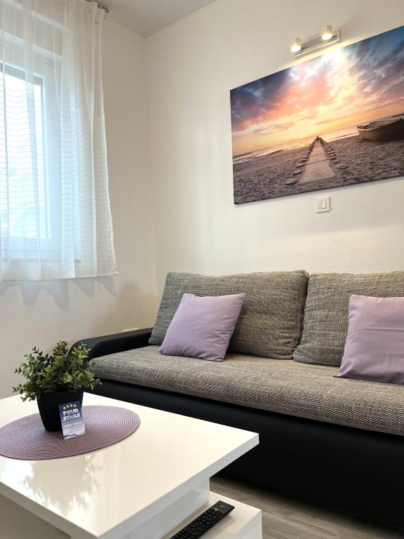 What can I say, except that it went by too quickly... The apartment is just like in the photos, perfectly clean, equipped so that you don't need to bring anything from home. Parking in the shade of an olive tree.. The hosts are wonderful, unobtrusive, but always available for whatever you need. The location is excellent, about 50 meters from the most beautiful beach in the town. Only 8 km to Biograd, 20 km to Zadar, ideal for a family vacation... I must say that this is the first apartment that met all my expectations because everything was as advertised, it deservedly has 4 stars. Thank you to Mrs. Zrinka and Mr. Željko for this wonderful vacation. We would love to come back again. PS special greetings to Mini, the cutest dog in the world