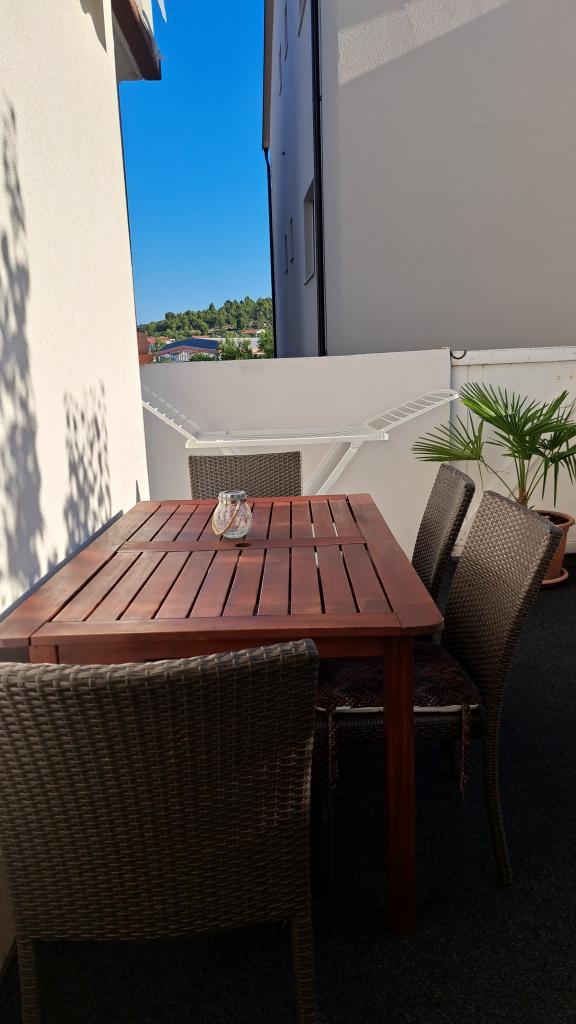 Apartments \Aneta\ are located at the very entrance to Tisno. Two apartments are located on the 1st floor, while the third apartment is located on the ground floor. The apartments have balconies, and the apartment on the ground floor has a spacious terrace. The apartments are equipped with a kitchen with an oven, stove, refrigerator, and kettle. The apartments have SAT TV, WIFI, and each apartment has separate air conditioning. Parking spaces are provided in front of the house, and a boat mooring is available on request.