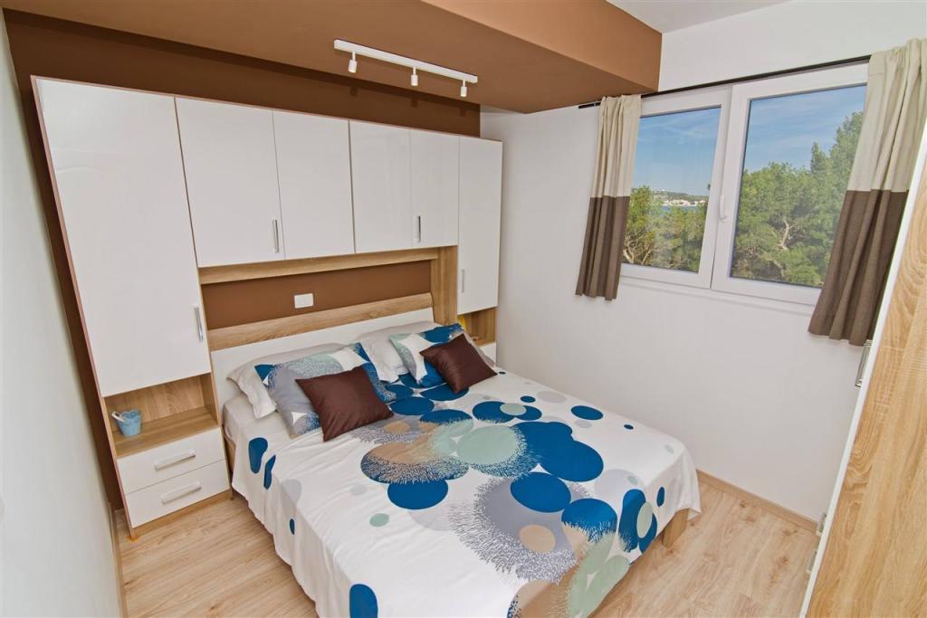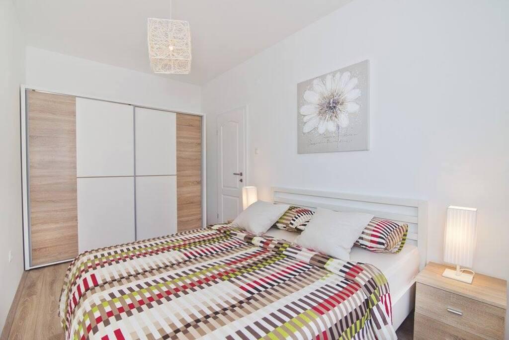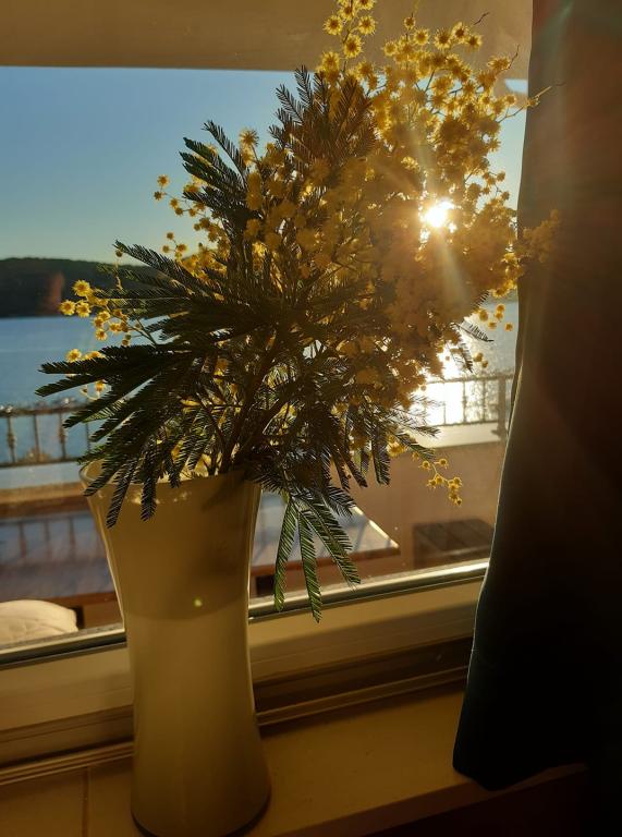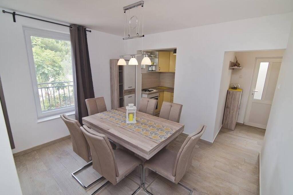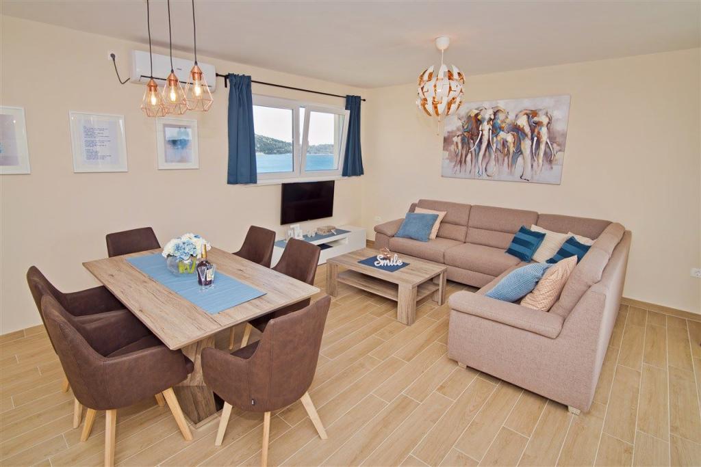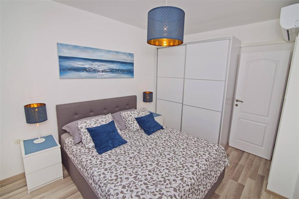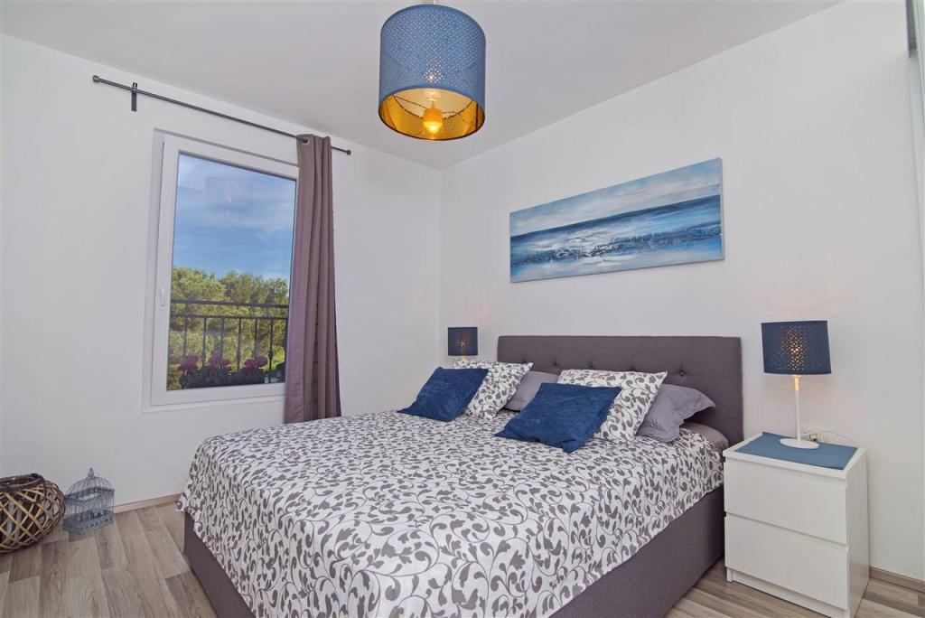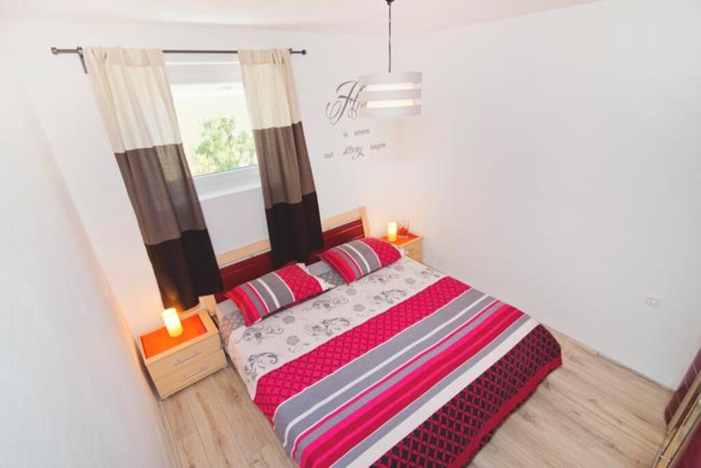 We are located on the mainland side of the bridge, right next to Jazine beach. Our facility contains 2 apartments, each with 3 bedrooms, fully equipped with a wonderful view of the sea. They contain all the necessary equipment, as well as bed linen and towels. The apartments are air-conditioned, have free parking and Wi-Fi. In addition to the apartment, it is possible to secure a mooring for a boat on a buoy, without additional charge. In front of the apartment there is a small waterfront for swimming, suitable for smaller children, while the main beach of Jazine is a 5-minute walk away. The apartments are located in a quiet neighborhood, without noise, and are suitable for a family vacation.