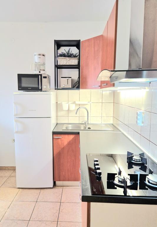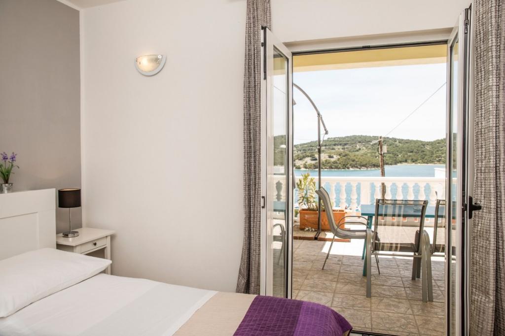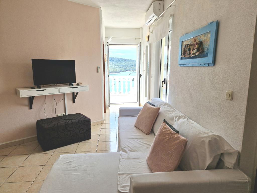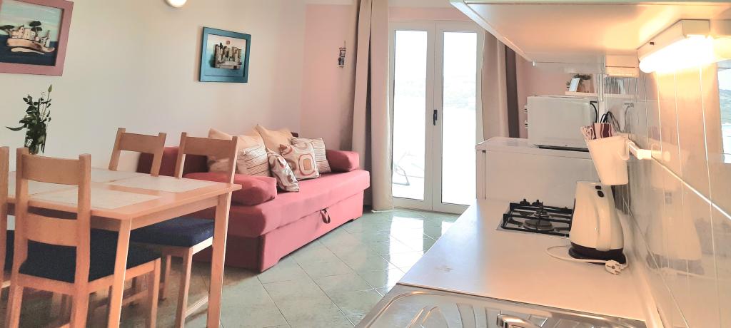 Apartments PETRANIĆ are located in a family house in Tisno Apartments are located 50 m from the sea and 600 meters from the nearest beach. Distance to the town center is about 700 meters. All apartments have a kitchen with all necessary equipment and utensils. All apartments have a terrace overlooking the sea. Free parking within the property. The apartments are equipped with air conditioning, satellite TV, coffee maker, free WiFi,. The apartments consist of: - living room with seating area - kitchen with dining area - balcony - one or two bedrooms. There are several restaurants nearby with a variety of local and Mediterranean dishes. Grocery stores are about 700 meters away. Bus station, taxi stand, tourist information, boat rental, bicycles, ATMs and other service facilities.