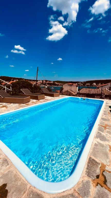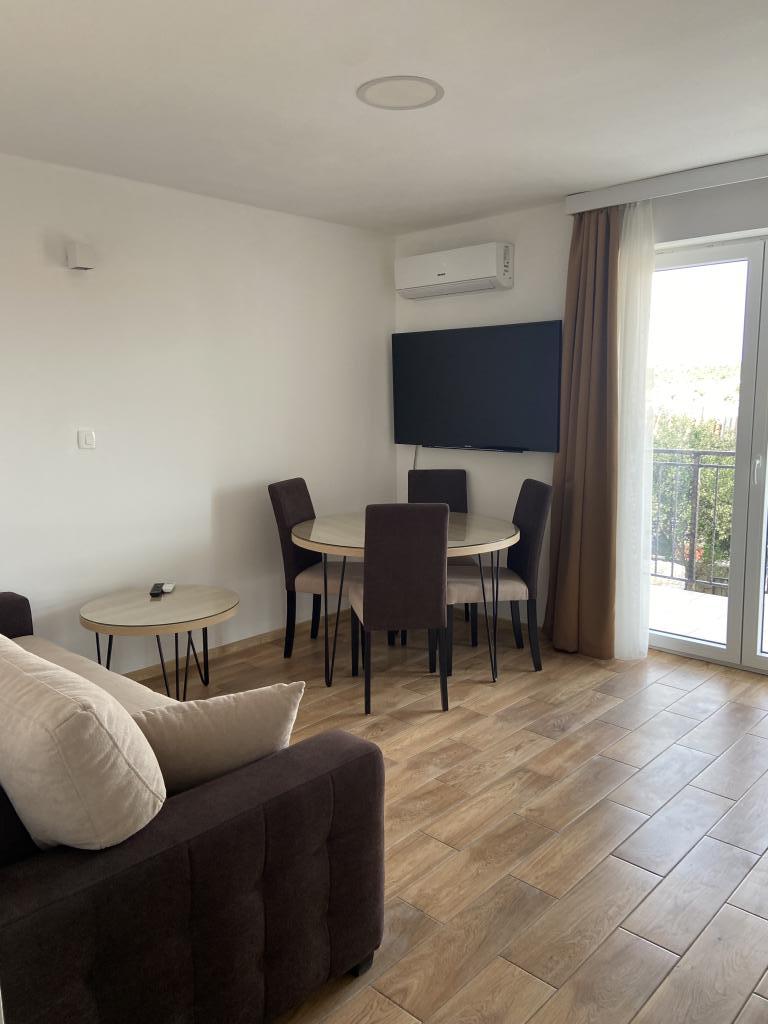 Tisno Resort is located on the island part of the city, in the immediate vicinity of the sea and beaches, as well as forest roads and paths that lead to the surrounding places, from which there is a unique view of the Kornate National Park. Next to the Resort, there is a stone path that leads to the beautiful old stone church of Our Lady of Karavaj. The resort has four stars, which sets it apart from most other accommodations right from the start, and thus ensures luxury and privacy for its guests. It offers 6 separate apartments, 2 on each floor. Each apartment can accommodate 4 people (a bedroom with a double bed, and two additional bedrooms with the most modern memory foam mattresses) and has a bedroom, bathroom, kitchen and living room. The apartments are equipped with new and modern audio and TV equipment, WiFi, furniture and air conditioning. Each of the apartments has access to a balcony and access to a shared terrace on the ground floor. The outdoor area of the Resort offers a barbecue, a common outdoor kitchen, a swimming pool and showers.