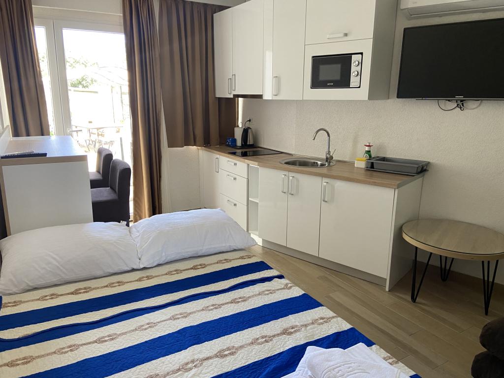 Read more Accommodation unitsThe cleaning fee is not included in the accommodation price and is additionally charged at €70 per apartment. Advance payment is 10% of the total amount of accommodation. Payment is possible by bank transfer (payment to the account) or cash payment on the day of arrival (on site). The minimum length of stay is 5 nights. Check in 16:00-22:00 Check out until 10:00 Guests must not make noise between 22:00 and 08:00. There is no private parking. Public parking is available on the street. The host provides guests with a free parking ticket during their stay.