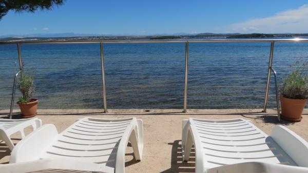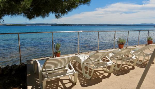 Brist Apartments are newly decorated apartments situated in village Tkon on the island of Pasman. We rent two new apartments with beautiful view on sea and mountains from the big terrace, only 2 meters from the sea. Come and enjoy a long tradition of 33 years. Spend your best holidays! The Space Apartment BLUE and GREEN are apartments of 40 squere meters, with big terrace and brethtaking view. Apartments are made of bedroom, toilet, kitchen and big living room. Capacity per apartment is 4 person. Bathroom and kitchen are well equipped. There is also cable TV, free wi-fi internet connection and air condition. The Neighborhood Center of Tkon is 700 meters from the apartment where You can find all necesary things: bank, post office, markets...