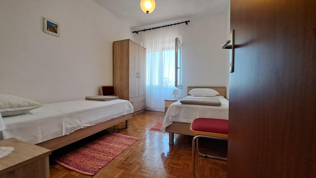 The apartment is very spacious, perfectly equipped and clean. It has a spacious terrace overlooking the sea through an olive grove. The hosts are very nice, they will entertain you with vegetables and figs from their own garden. The apartment is a few minutes walk from the sandy beach and the center of Tkon.