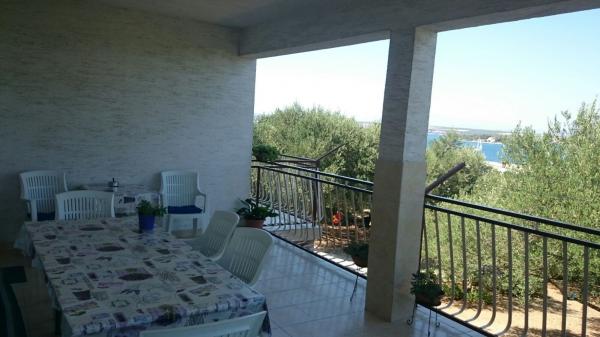 The house is located just a 5-minute walk from the beach and the center. It is surrounded by olive trees and hidden from the view of passers-by. Parking is provided in front of the house. It is possible to use the outdoor grill. The larger apartment 1/4 1 is on the first floor of the house. From the beautiful spacious terrace there is a beautiful view of the sea and the city of Biograd. The apartment is clean, comfortable and fully equipped for your stay.