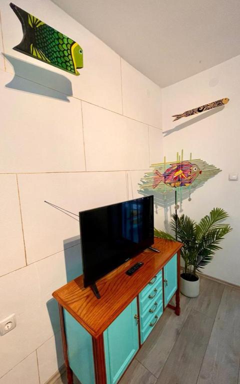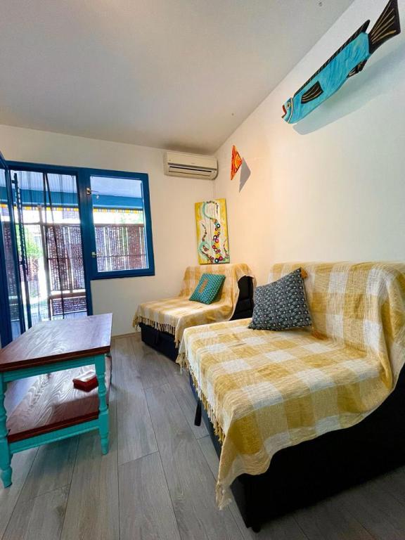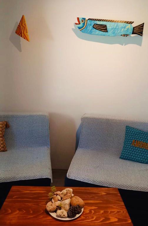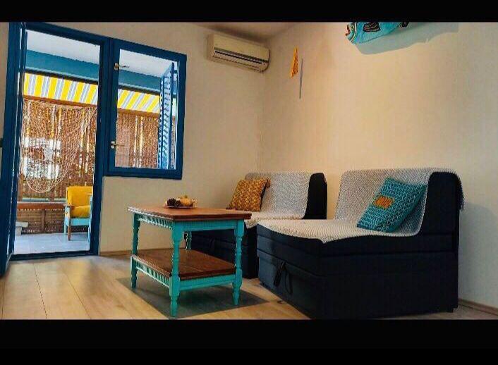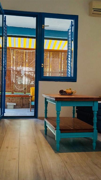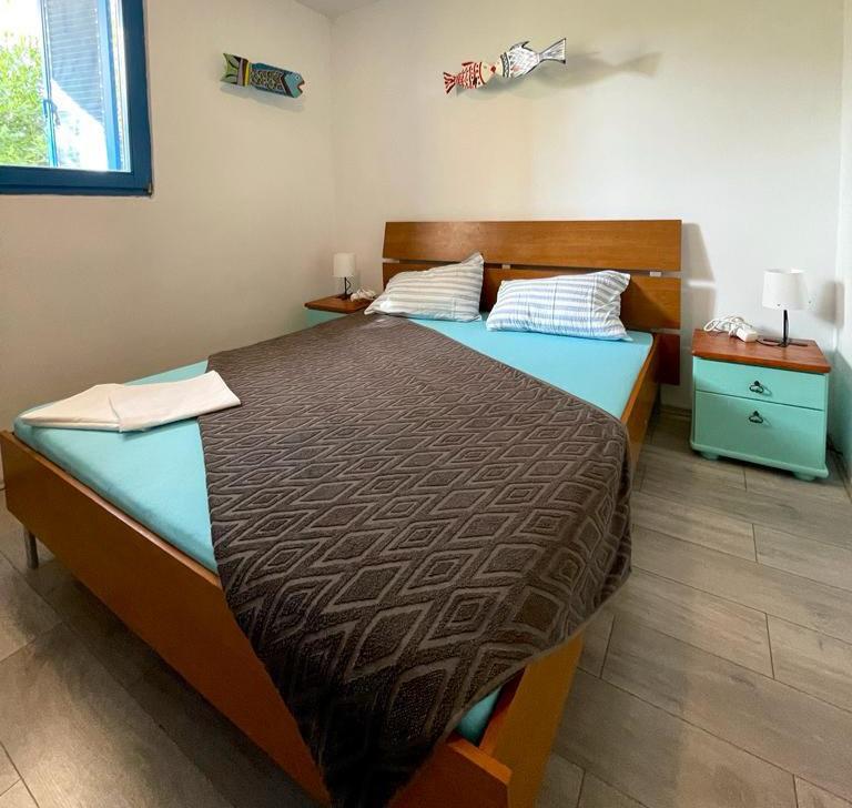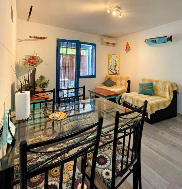 Besides the fact that you are located in a hidden and quiet corner of a beautiful little fishing village, when you cross the threshold, you will be greeted by unusual decor and a sense of playfulness that will make your stay truly unforgettable. Sail into vacation with colorful playful fish that sail from room to room, and each piece of furniture has its own story. From the bedroom window you can see and smell the laurel trees. From the living room, where there are comfortable extra beds, you can go out to the terrace where you will have complete intimacy. While the air conditioning cools you down, embark on a culinary adventure in the fully equipped kitchen. You can socialize and dine on the outdoor terrace in the thick shade. Of course, your tin pet has a guaranteed place, right next to our newly furnished apartment.