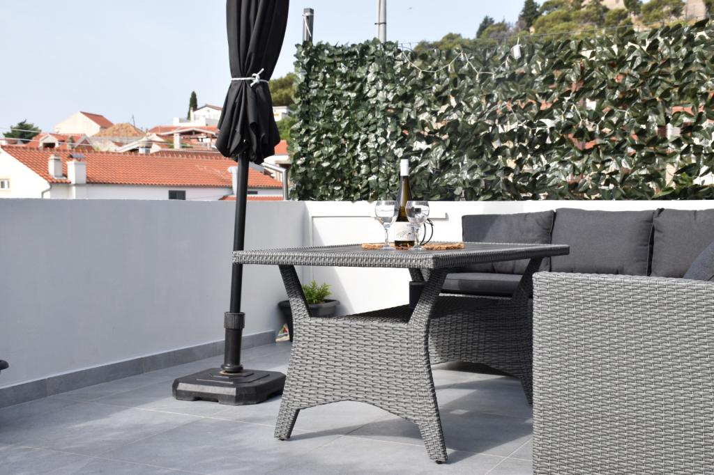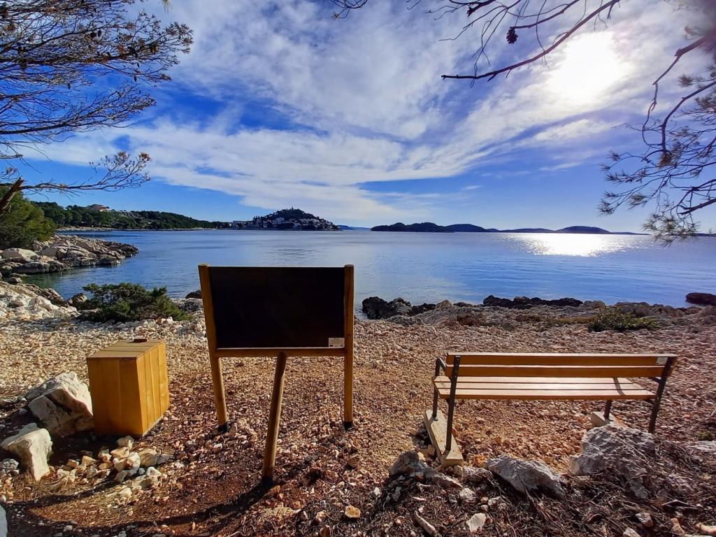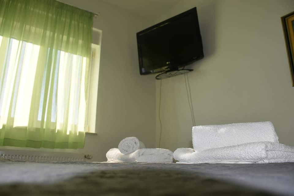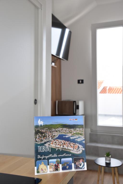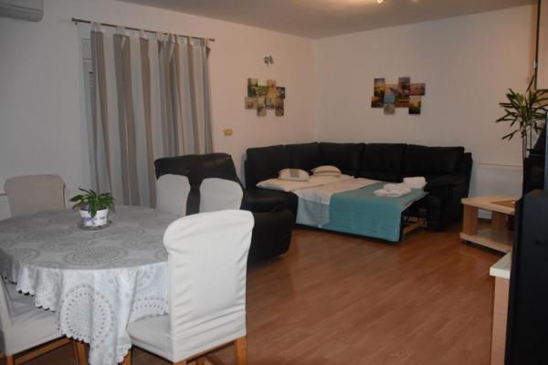 The apartment offers accommodation in a quiet part of Tribunj, surrounded by greenery and olive groves. The street is one-way and there is no big traffic. The apartment is air-conditioned, has 2 bedrooms and a corner sofa bed, fully equipped kitchen (dishwasher, microwave, oven, kettle, coffee maker, mixer) 2 toilets (shower and bathtub) for clothes, dryer, mosquito protection in all rooms, TV in the bedroom and living room, free WIFI, SAT TV. The apartment is air-conditioned. Ironing facilities and iron are provided. The apartment also has two spacious terraces for rest, barbecue and 2 parking spaces.