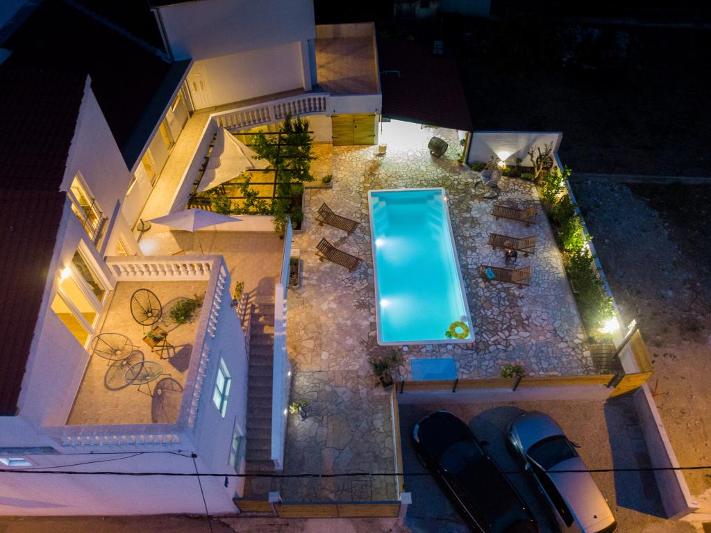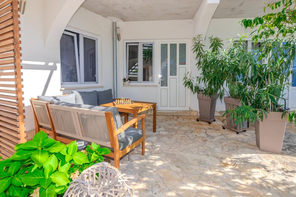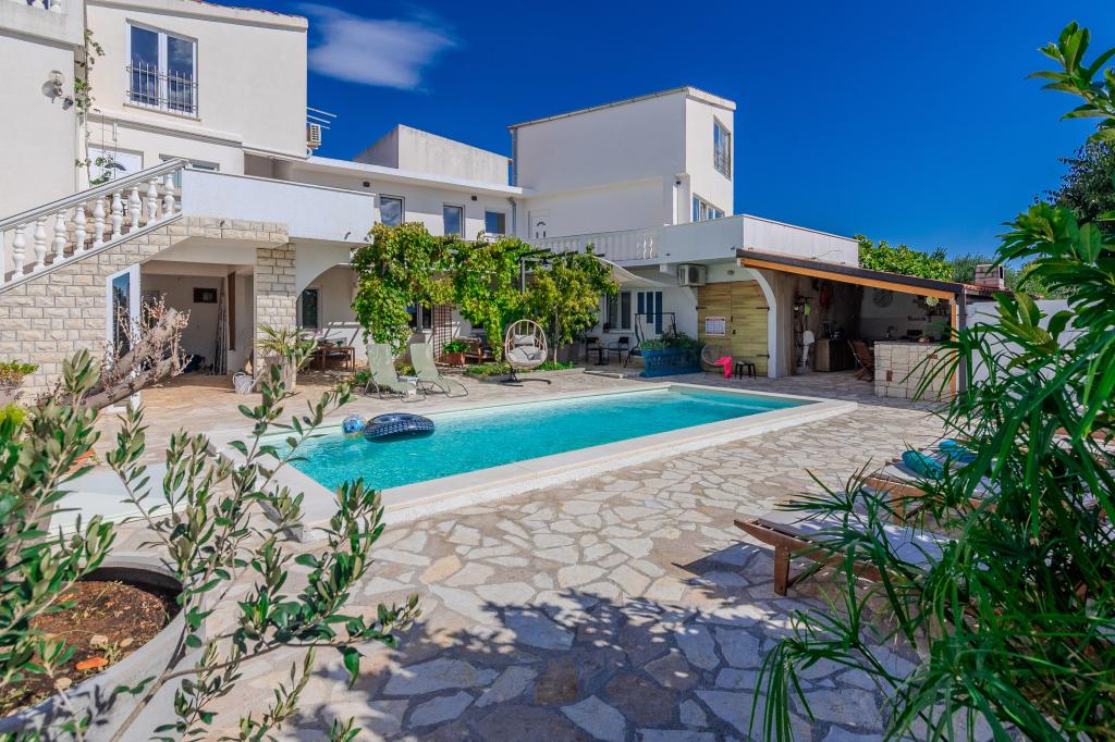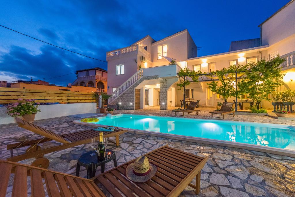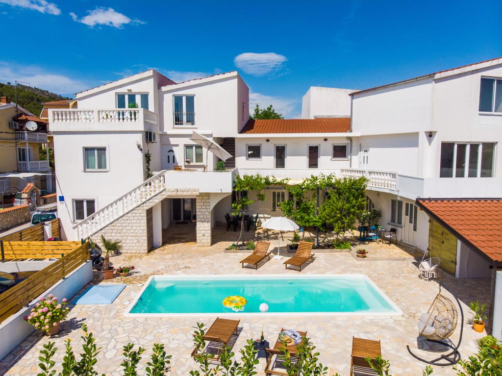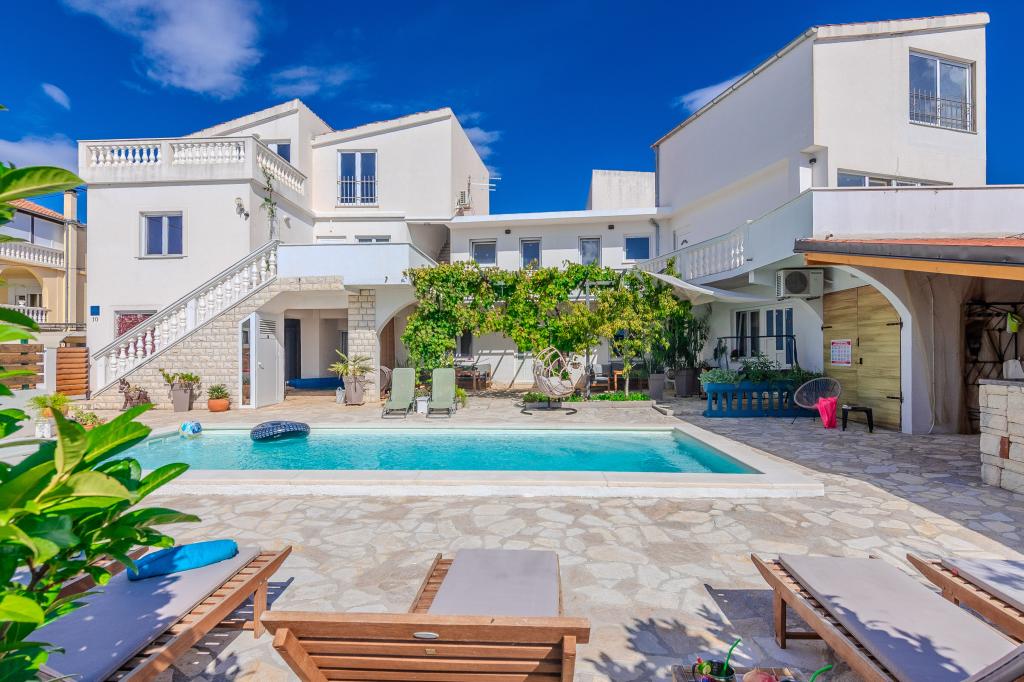 The apartments are located in the small fishing village of Tribunj. With a short and easy walk from the house to the market, you can buy fresh fish, seasonal fruits and vegetables every day. A large garden with a swimming pool and additional amenities will make your vacation enjoyable. Boat trips to the Kornati National Park are organized from Tribunj.