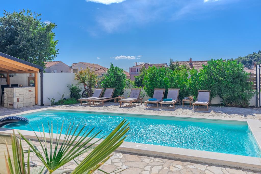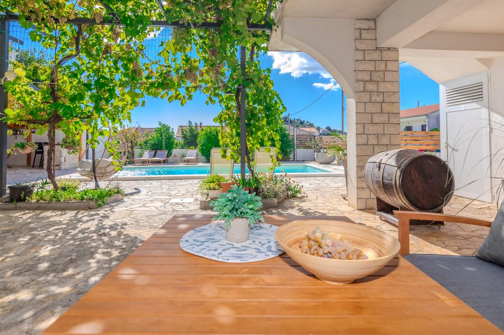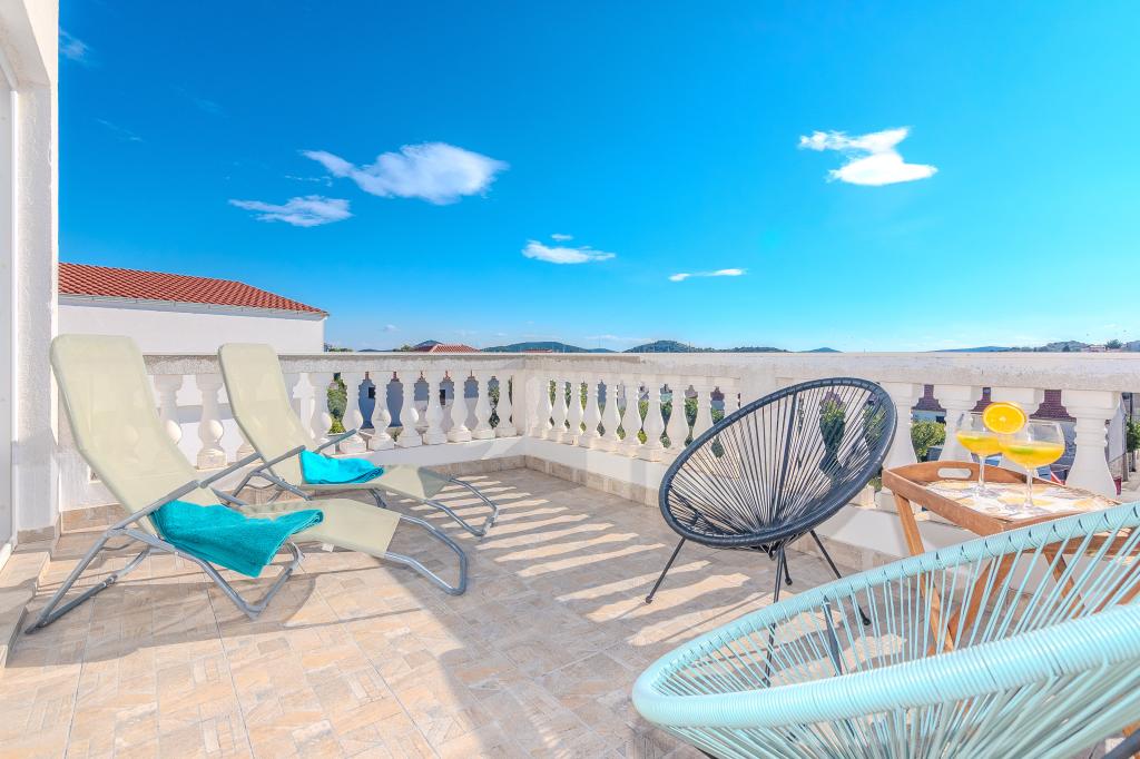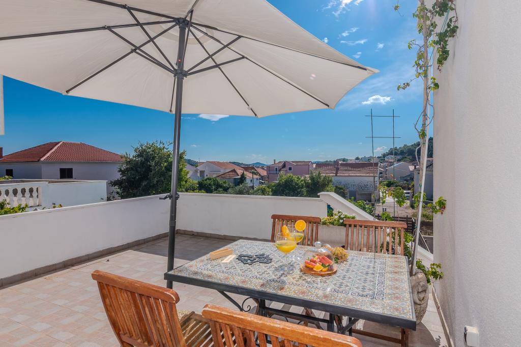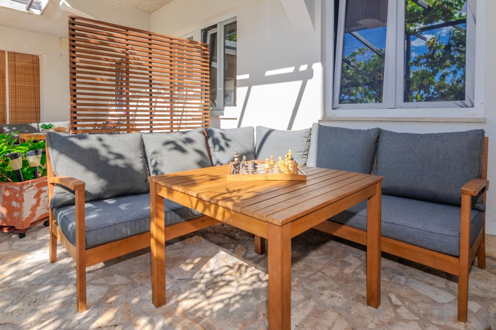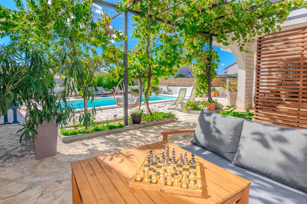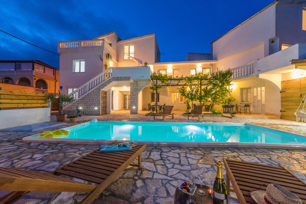 The apartments are located in the small fishing village of Tribunj. With a short and easy walk from the house to the market, you can buy fresh fish, seasonal fruits and vegetables every day. A large garden with a swimming pool and additional amenities will make your vacation enjoyable. Boat trips to the Kornati National Park are organized from Tribunj.