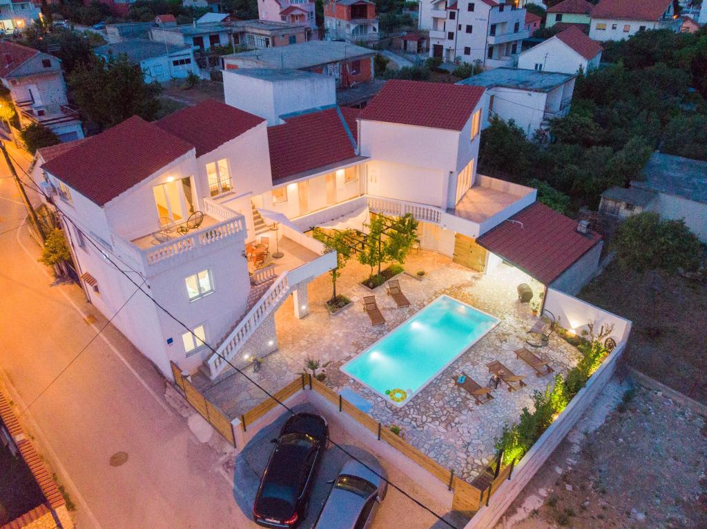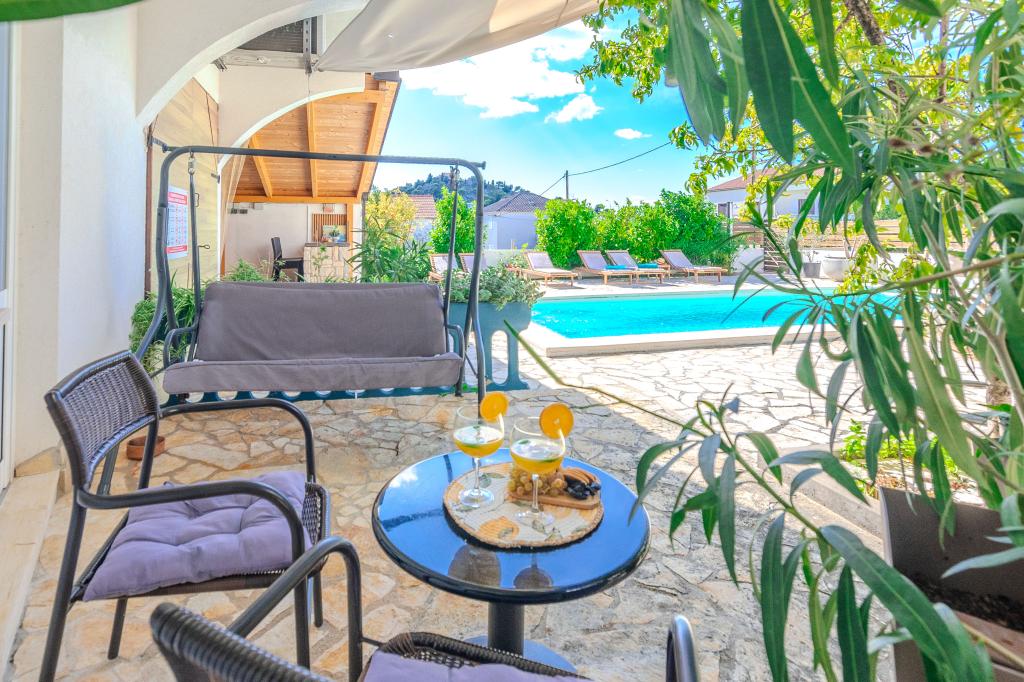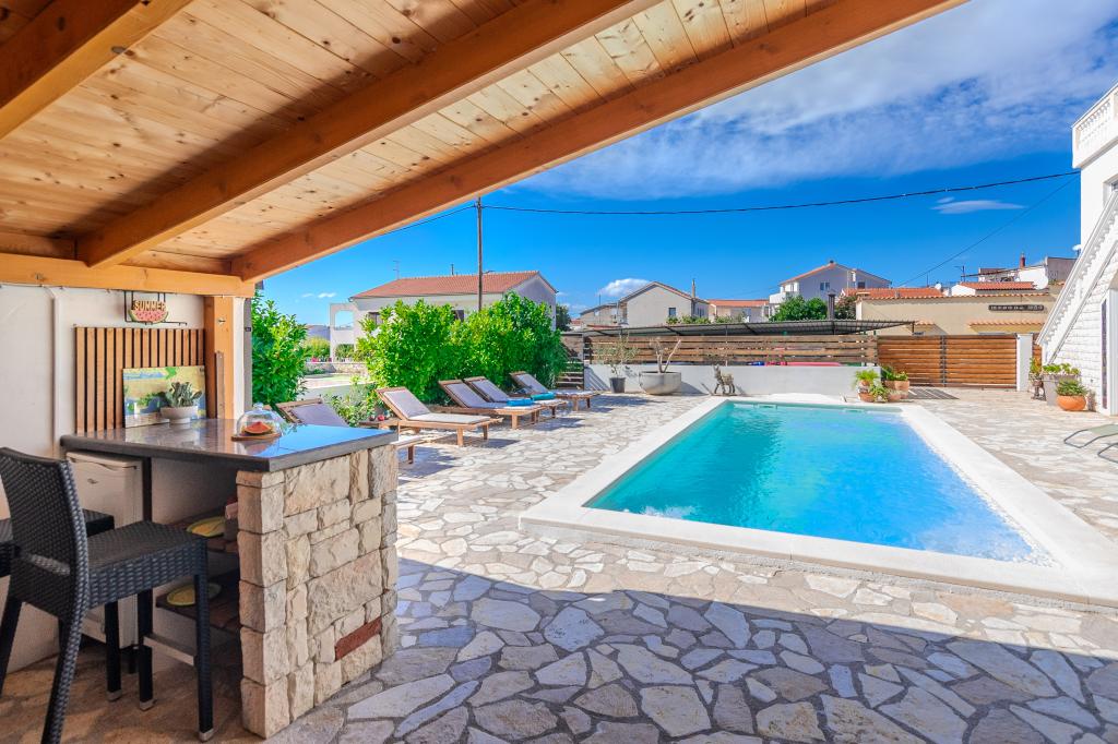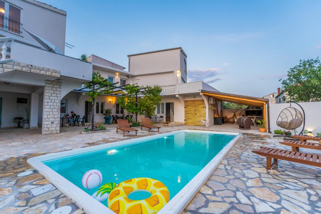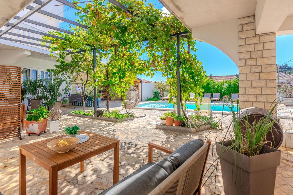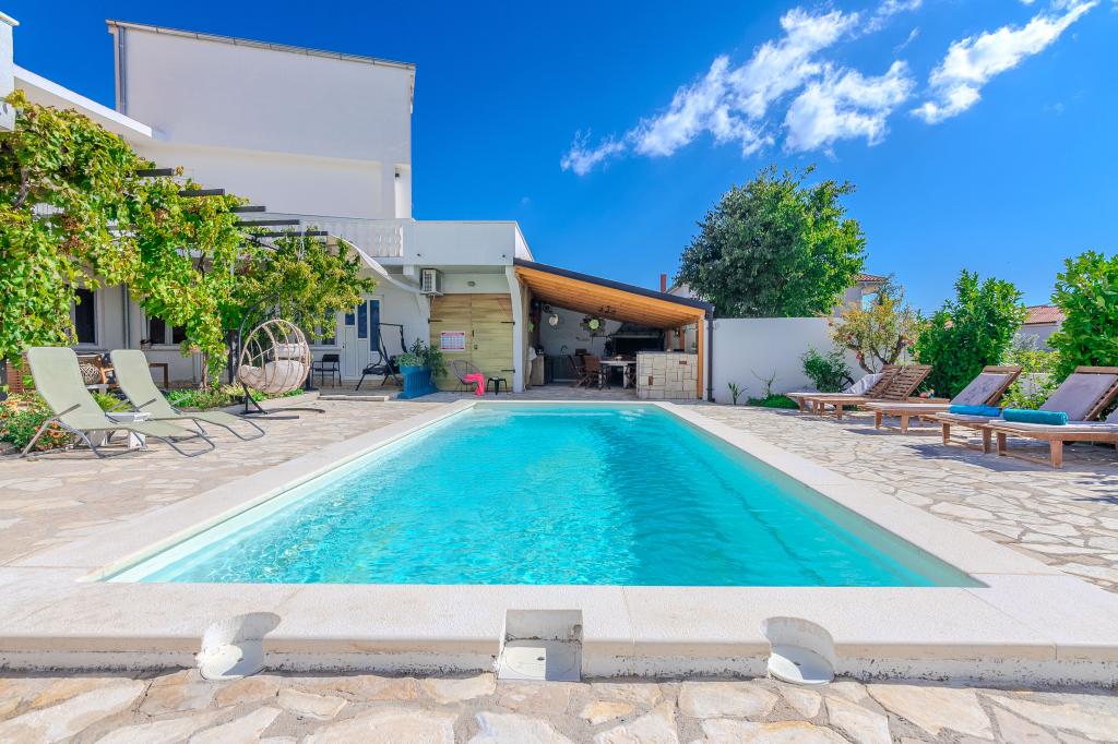 The apartments are located in the small fishing village of Tribunj. With a short and easy walk from the house to the market, you can buy fresh fish, seasonal fruits and vegetables every day. A large garden with a swimming pool and additional amenities will make your vacation enjoyable. Boat trips to the Kornati National Park are organized from Tribunj.