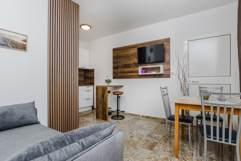 Read more Accommodation unitsPayment is exclusively in cash immediately upon arrival. An advance payment of 20% of the total amount is paid per reservation and is also a guarantee of the reservation. For short stay reservations, the full amount is paid. Advance payment is made by bank transaction, data is sent by agreement. The sojourn tax is included in the price, of the additional fees only cleaning is charged for the total stay per reservation in the amount of €40. Check-in is from 14:00, and check-out is until 10:00. Please state your arrival time in the reservation so that someone can meet you or give you directions. House rules: pets are not allowed parties are prohibited swimming pool opening hours 08:00-20:00 23:00-08:00 silence smoking is not allowed in the apartment