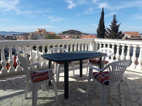 Equipped apartments in a family house in Tribunj with large parking and pool for the users of the facility. The facility is located at 5 min. walk from the center and from the beach.